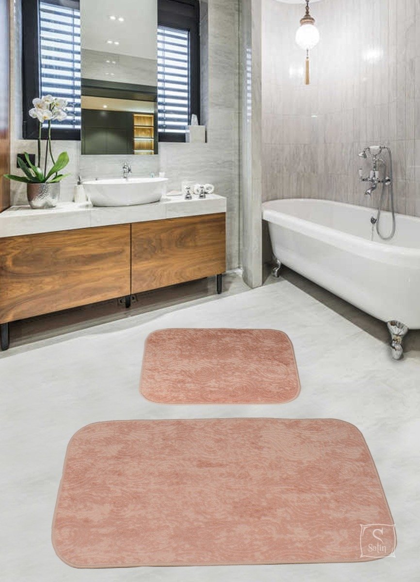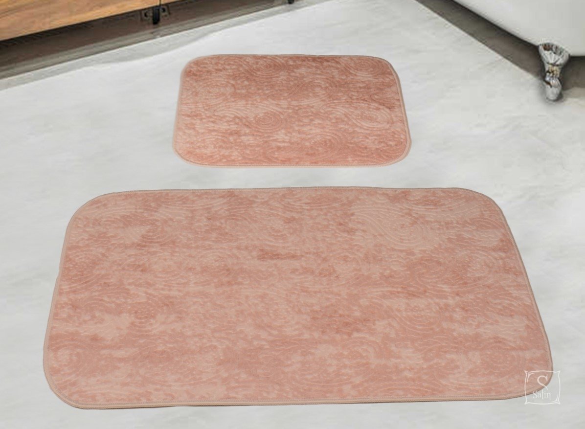 Набор хлопковых ковриков Gold Pudra выполнен из 100% хлопка в пудровом цвете, с узором турецкие огурцы (пейсли), прекрасно смотрится, долговечен, отлично стирается.