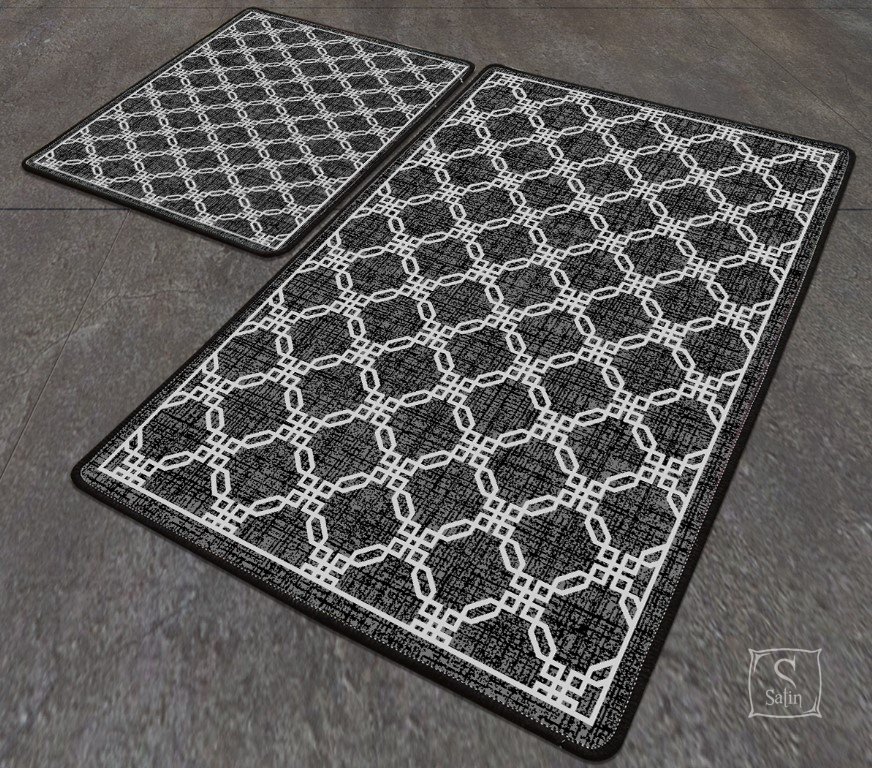 Набор ковриков для ванной Chilai Home Chain banyo halisi djt включает в себя два коврика в серо-белых тонах. Коврики Chilai Home выполнены без ворса из 100% полиэстера, с антискользящим покрытием, толщиной 0,5 см.