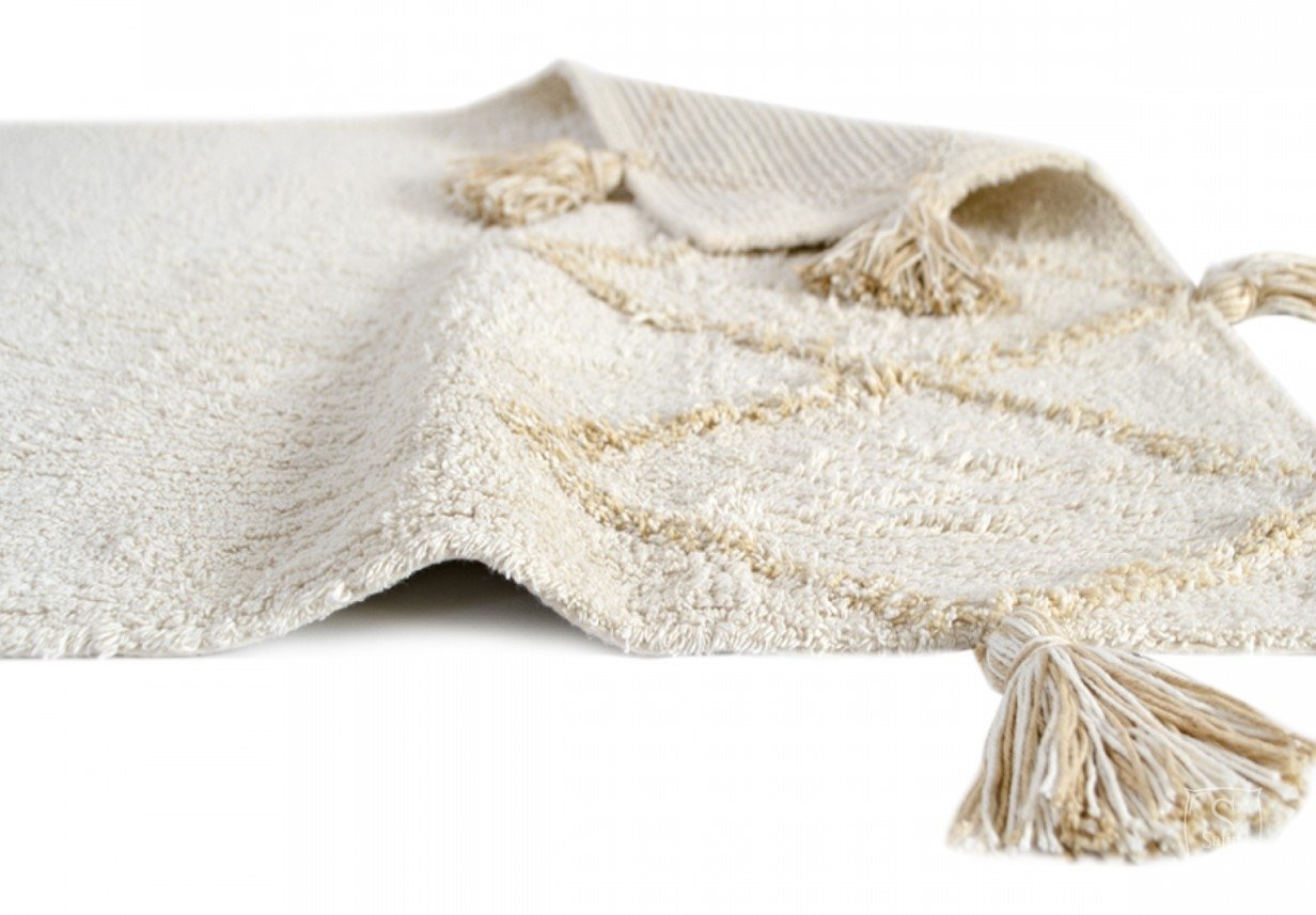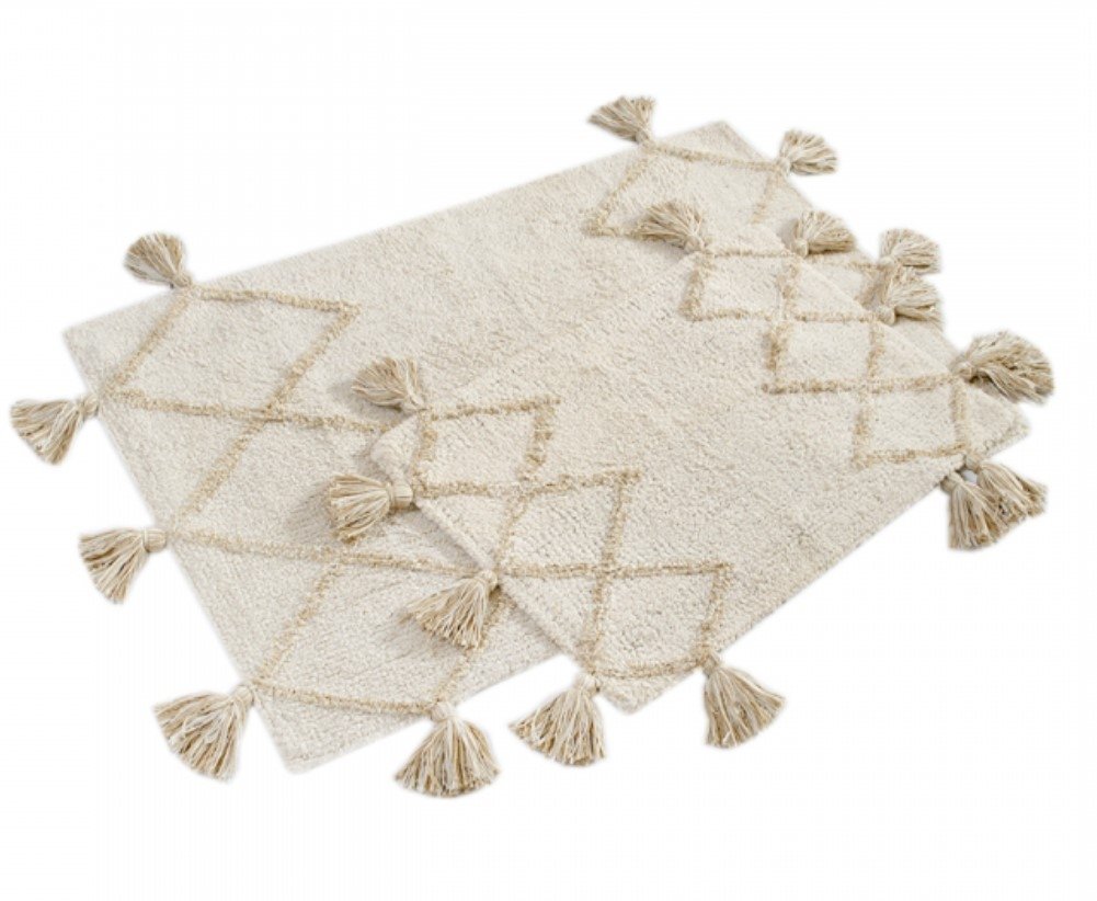 Набор ковриков с хлопковой основой Agnes krem выполнен из 100% хлопка в кремово-бежевых тонах, с геометрическим узором и кисточками. Такие коврики прекрасно смотрятся, долговечны, отлично стираются, станут украшением интерьера, сделают комнату более уютной и неповторимой. Плотность: 1680 г/м².