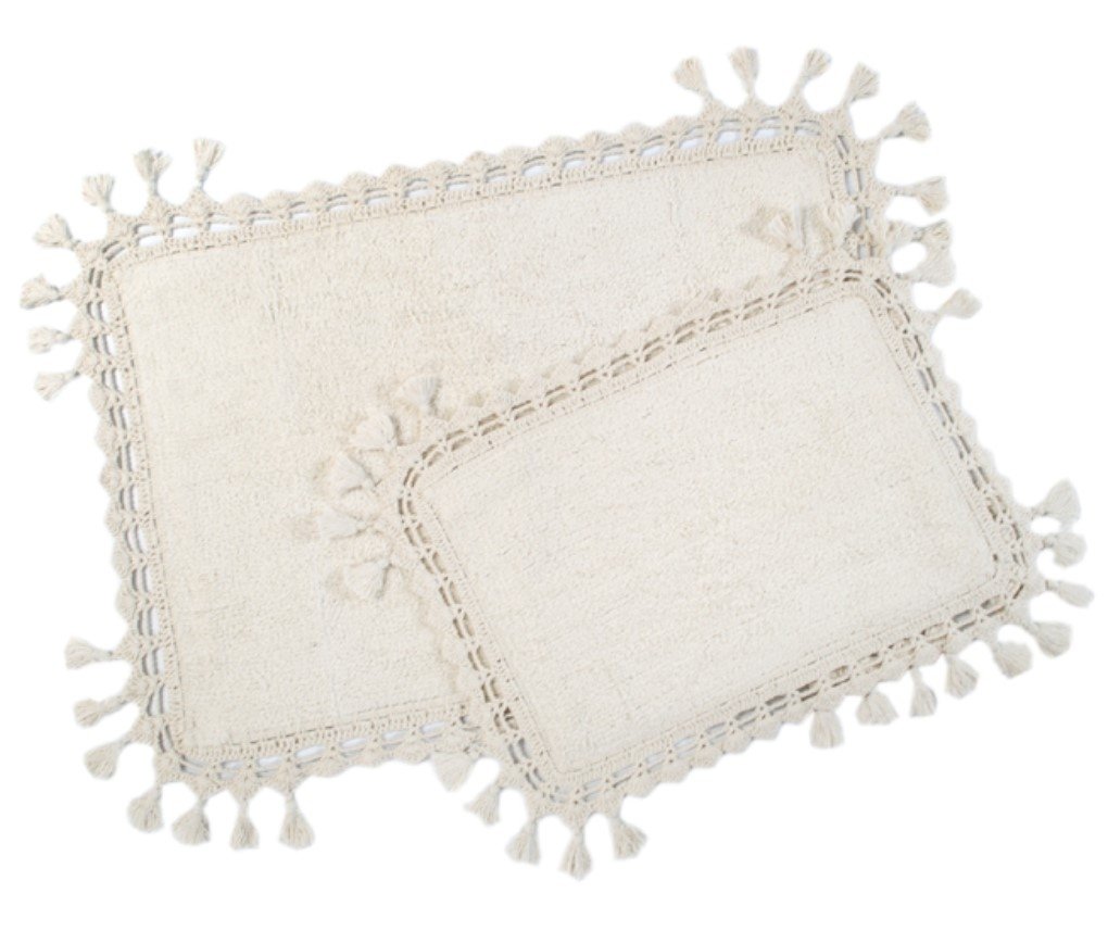 Набор ковриков с хлопковой основой Lorna krem выполнен из 100% хлопка в кремовом цвете, декорирован кружевом и кисточками. Такие коврики прекрасно смотрятся, долговечны, отлично стираются, станут украшением интерьера, сделают комнату более уютной и неповторимой. Плотность: 1760 г/м².