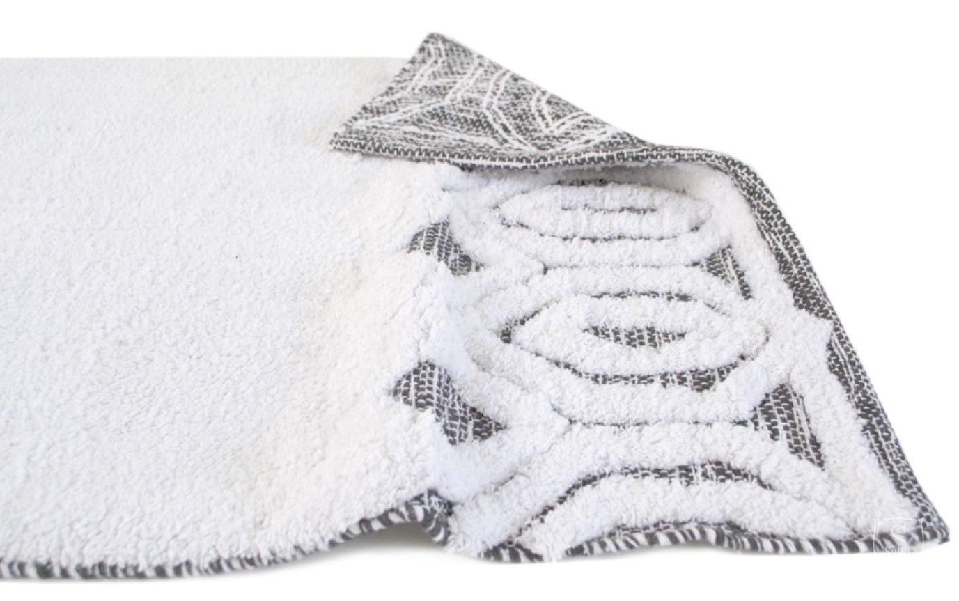Набор ковриков с хлопковой основой Sherry gri выполнен из 100% хлопка в молочно-серых тонах, с геометрическим узором. Такие коврики прекрасно смотрятся, долговечны, отлично стираются, станут украшением интерьера, сделают комнату более уютной и неповторимой. Плотность: 1760 г/м².