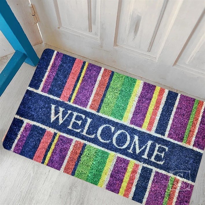 Прямоугольный придверный коврик IzziHome Welcome 2850-05 выполнен в разноцветных тонах с надписью. Подходит для использования на улице. Состав: 50% ПВХ (PVC), 50% полиэстер, нескользящая основа. Произведено: в Турции для ТМ IzziHome.