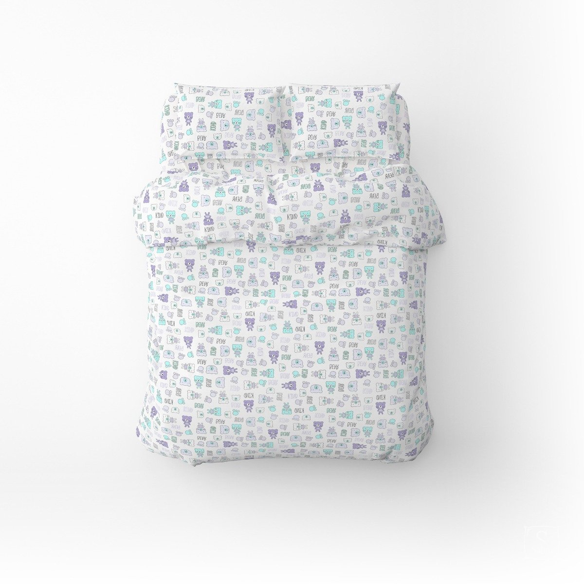 Детский в кроватку: Пододеяльник: 112х147 см - 1 шт., Простынь: 112х147 см - 1 шт., Наволочка: 40х60 см – 1 шт.