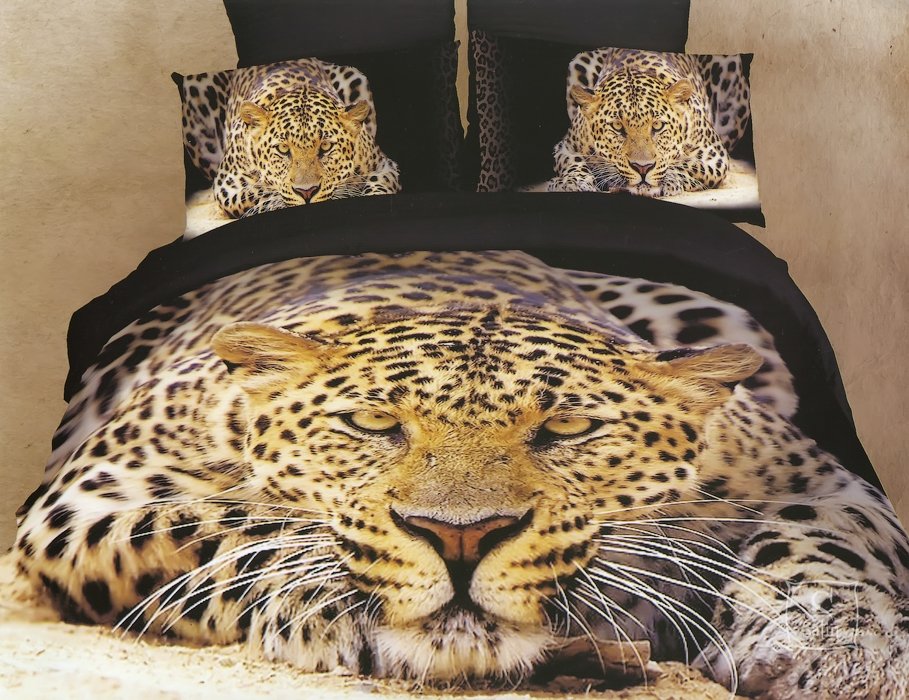 • Комплект ABC-292 с изображением леопарда на черном фоне. Использованы ткани-компаньоны - обратная сторона наволочек, пододеяльника и простыни в виде шкуры тигра.