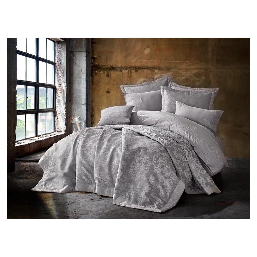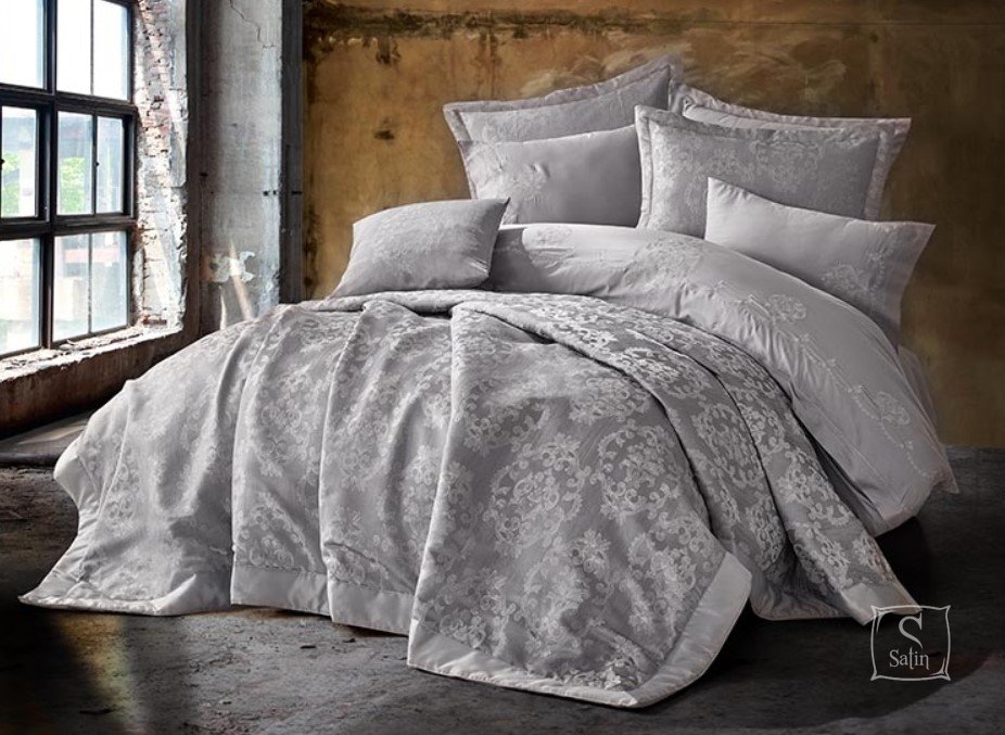 Состав ткани: Постельное белье -100% хлопок, сатин; Жаккардовое покрывало - 100% полиэстер.
