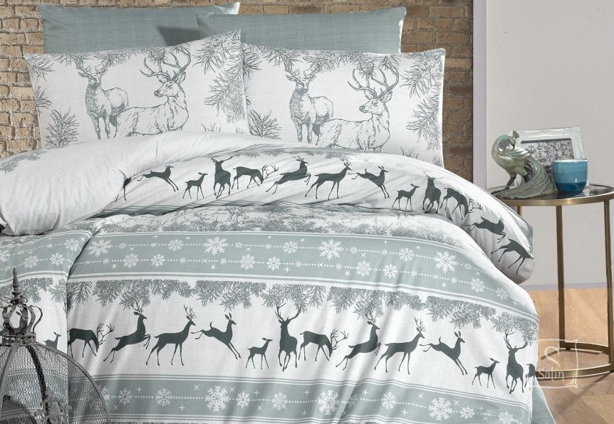 Новогоднее постельное белье First Choice. Ranforce Deer dark green