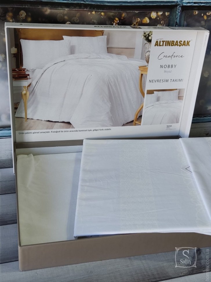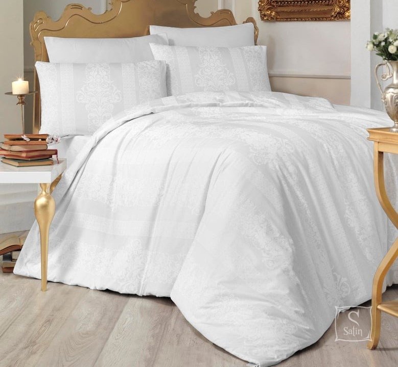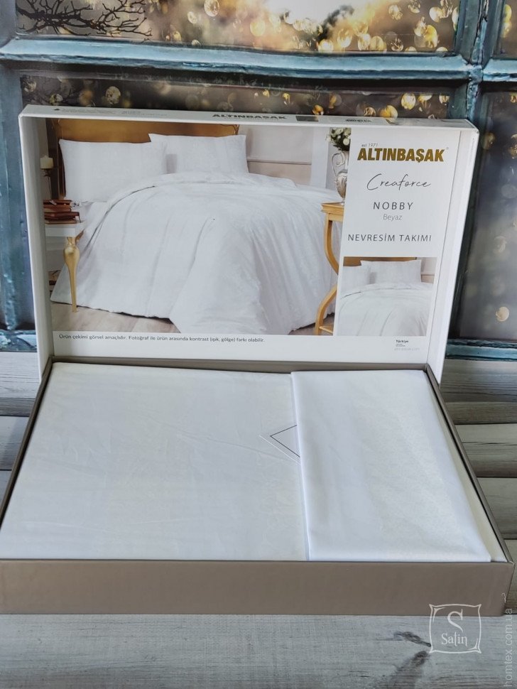 Комплект Nobby beyaz в белом цвете с узором. В наборе использованы ткани-компаньоны.