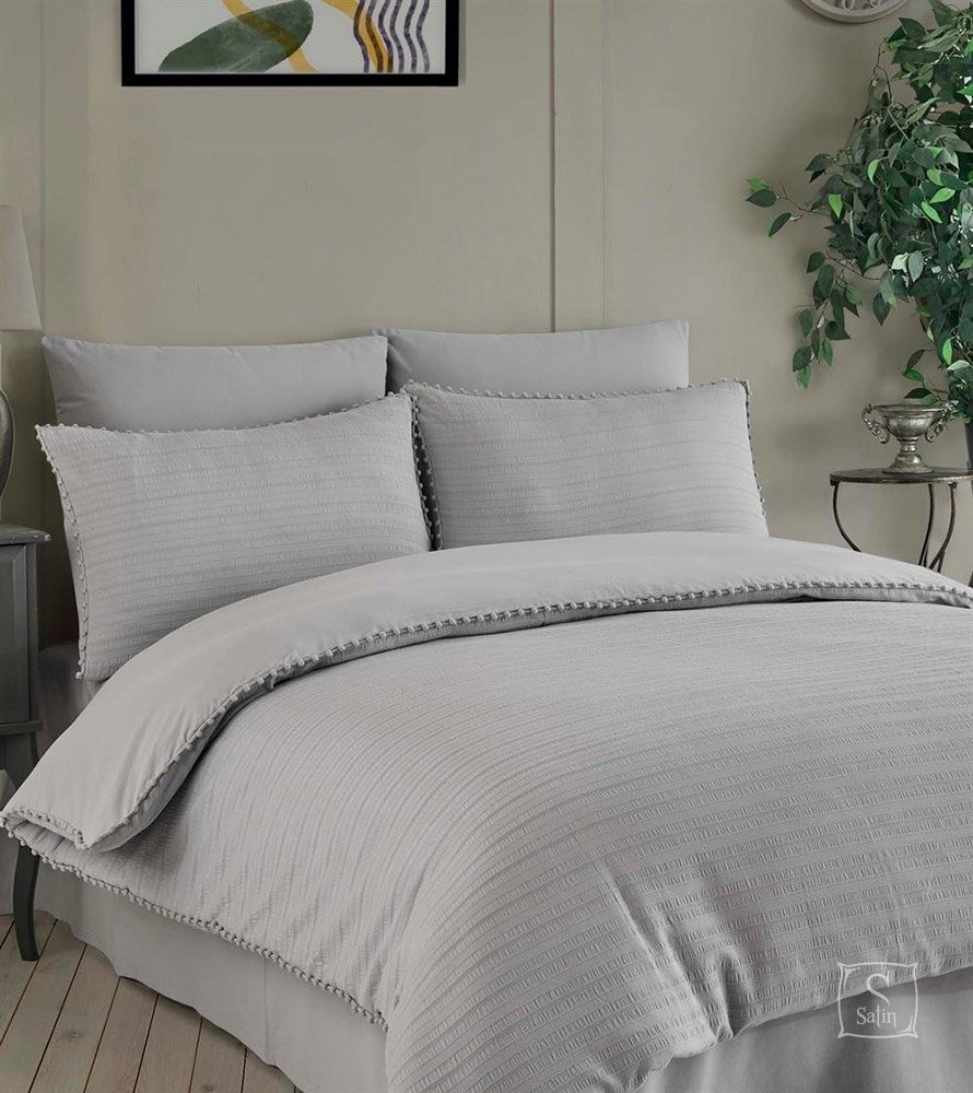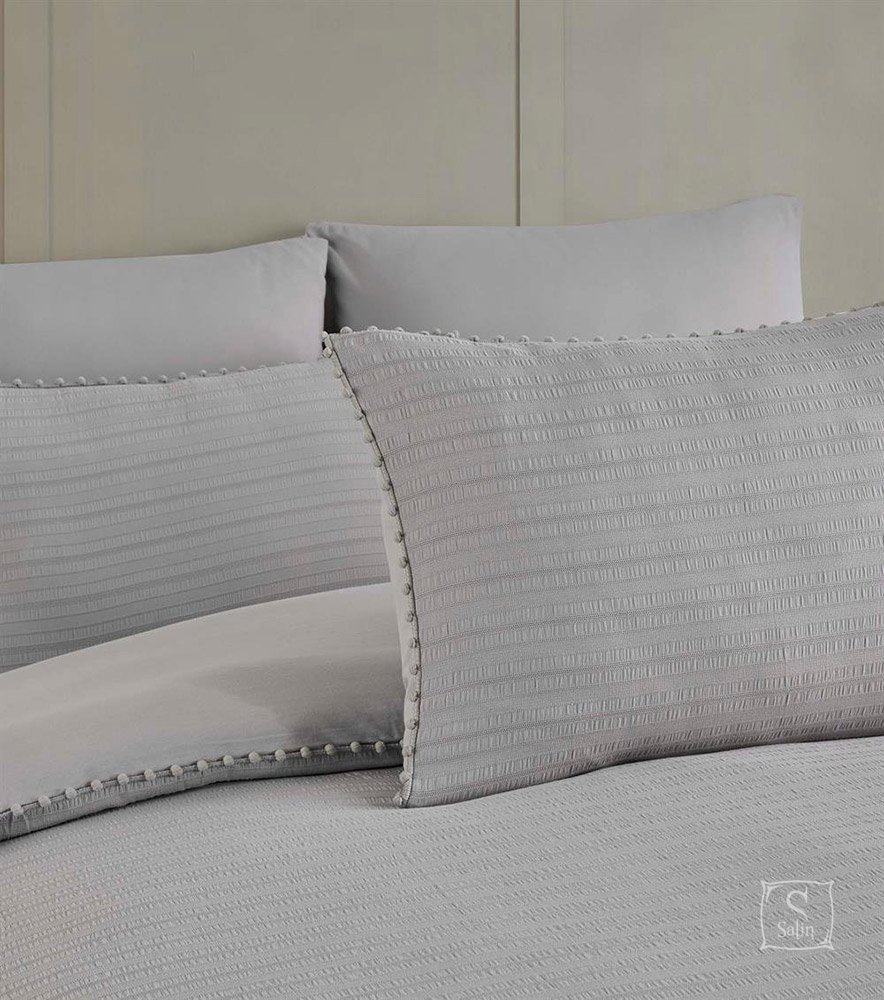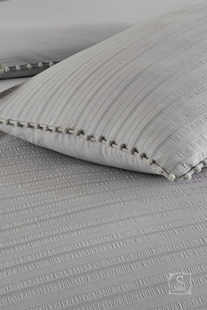 Комплект Emboss Marble однотонного серого цвета с красивой рельефной текстурой ткани и декоративным украшением по краям.