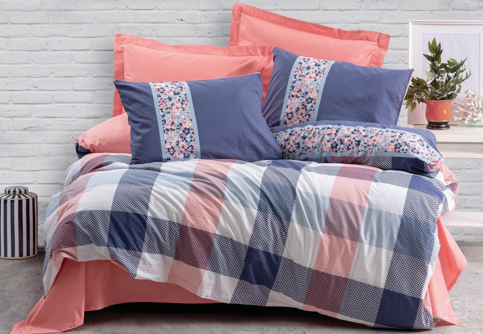 • Комплект Cielo mercan выполнен в разноцветных тонах с узором клетка и цветы. Использованы ткани-компаньоны.
