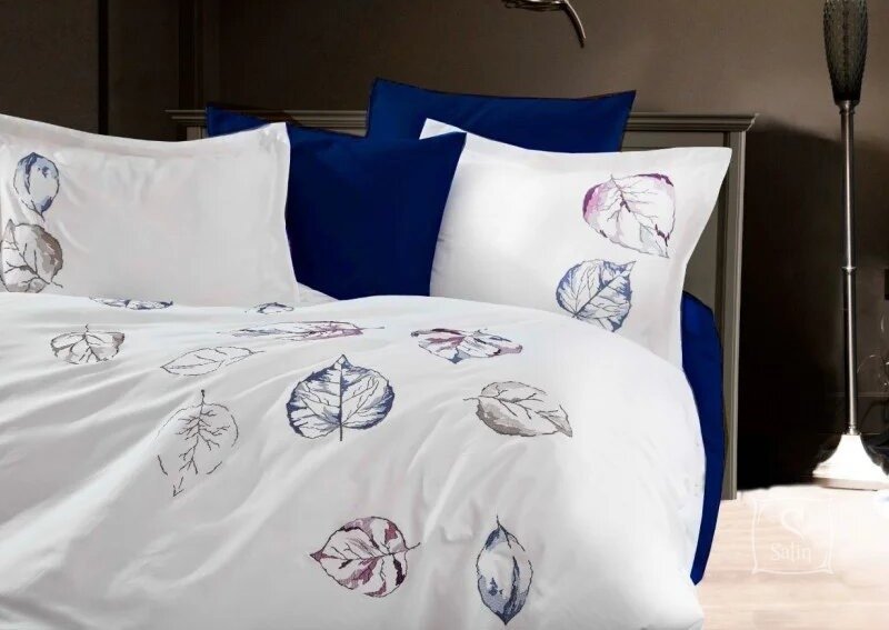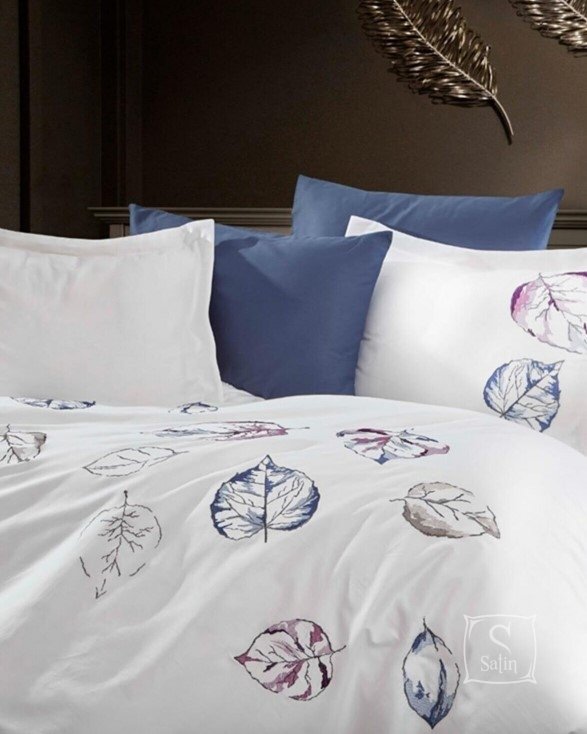 • Комплект Dantela Vita Cinar выполнен в сине-белых тонах с вышивкой.
