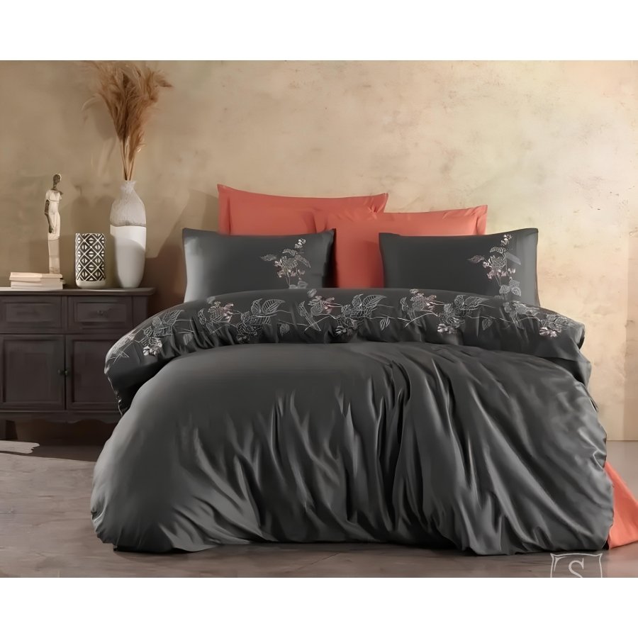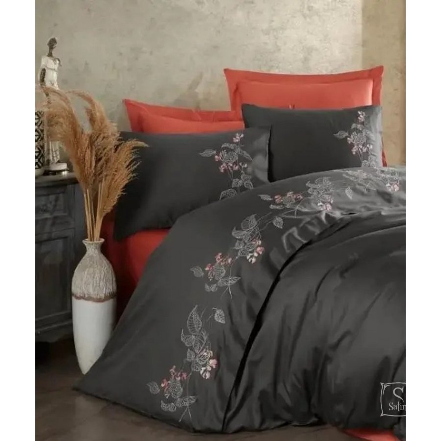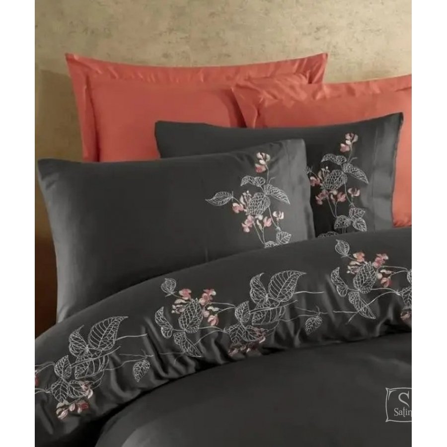 Постельное белье Dantela Vita. Efra antrasit с вышивкой