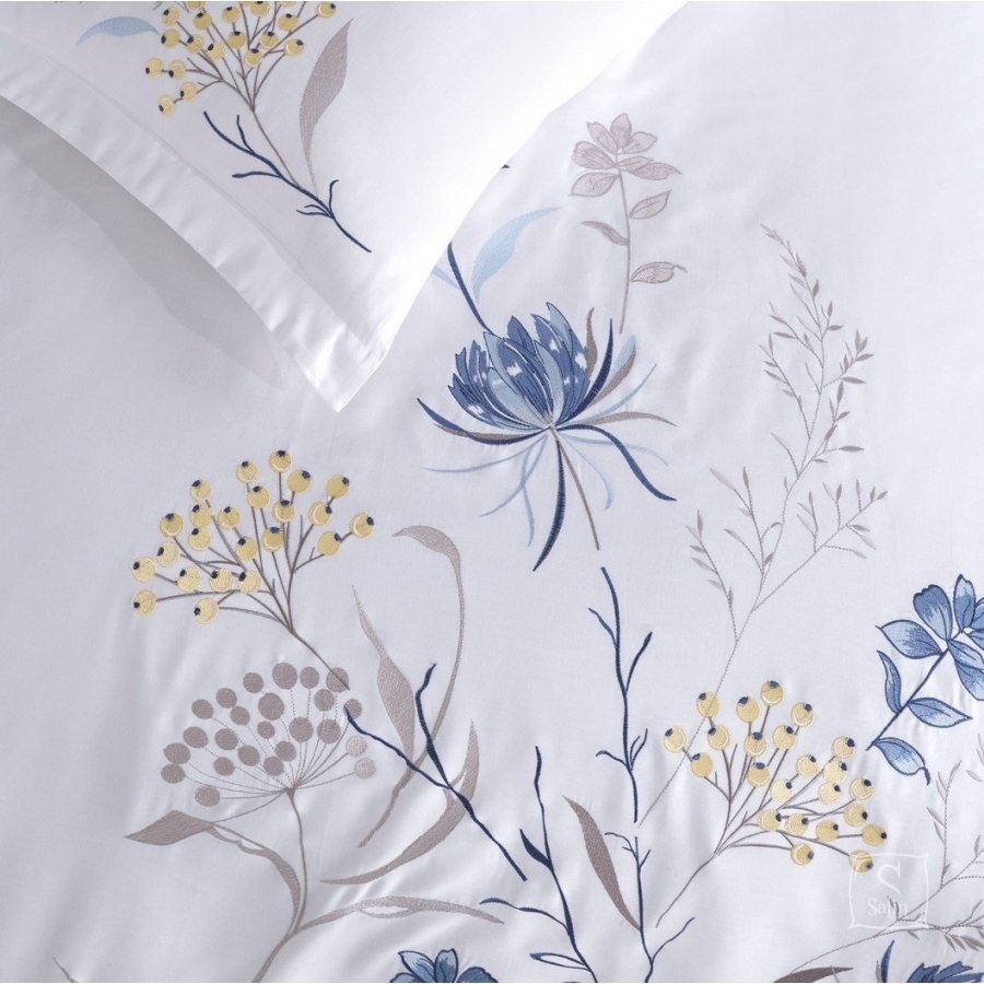 • Комплект Dantela Vita Nilufer beyaz выполнен в сине-белых тонах с вышивкой и жаккардовым рисунком;