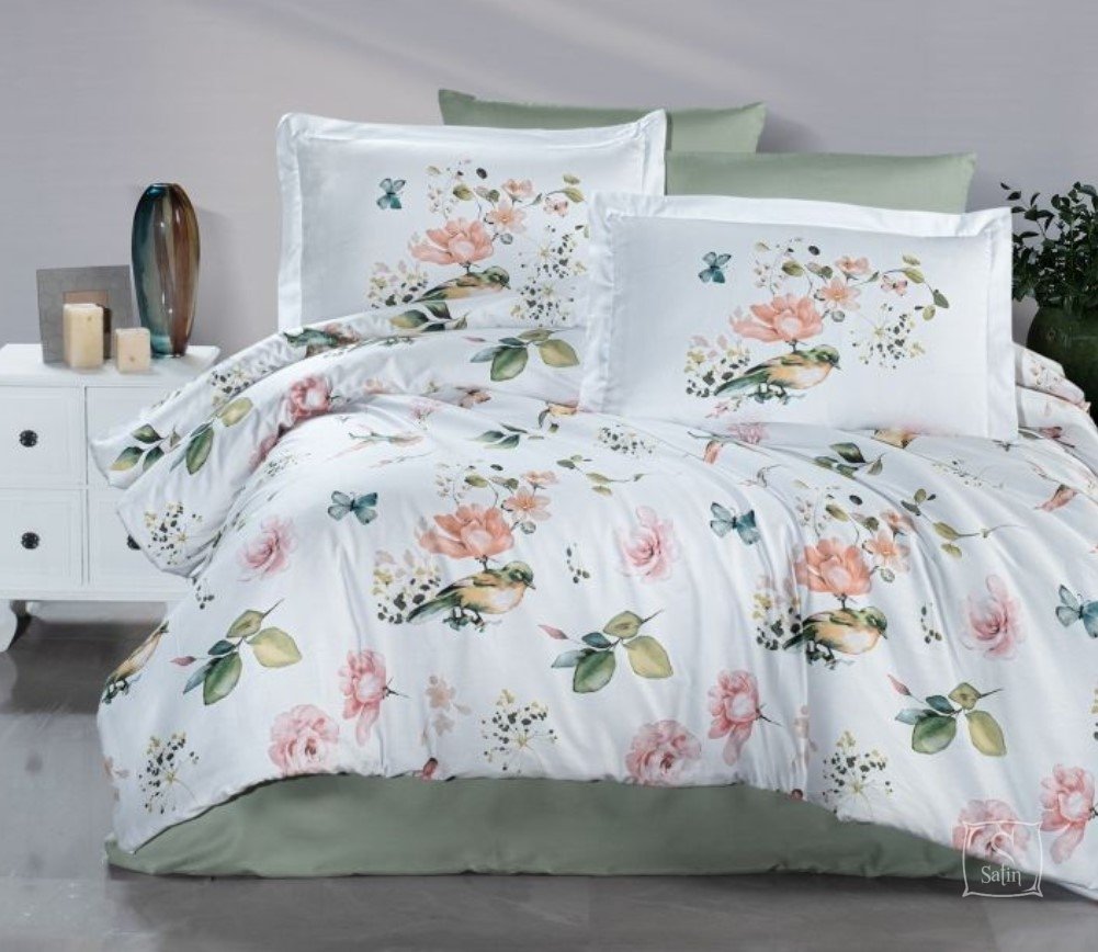 • Комплект First Choice Alice Green выполнен в разноцветно-зеленых тонах с узором цветы и птицы, простынь и две наволочки зеленого цвета. Компаньон сочетается красиво и стильно;