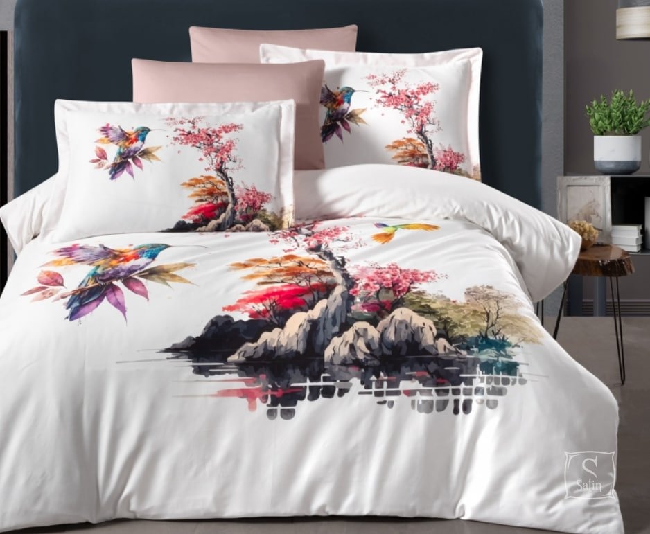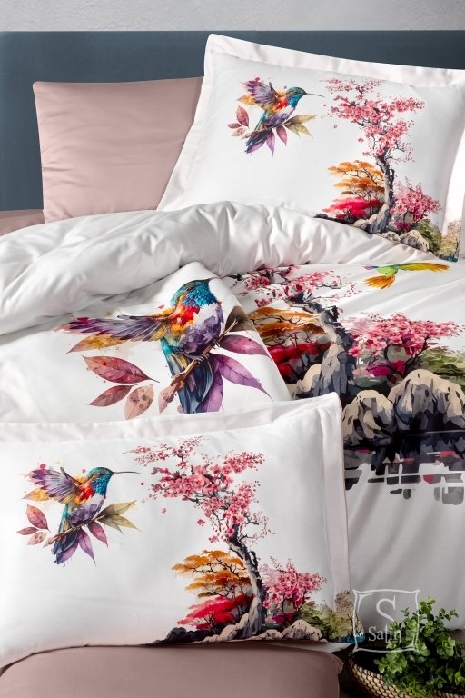 • Комплект Vip Satin 3D Ecora, воплощение элегантности и стиля. Современная технология 3D фотопечати создает реалистичный и живописный принт природы и птиц, который покорит сердца ценителей качественного белья.