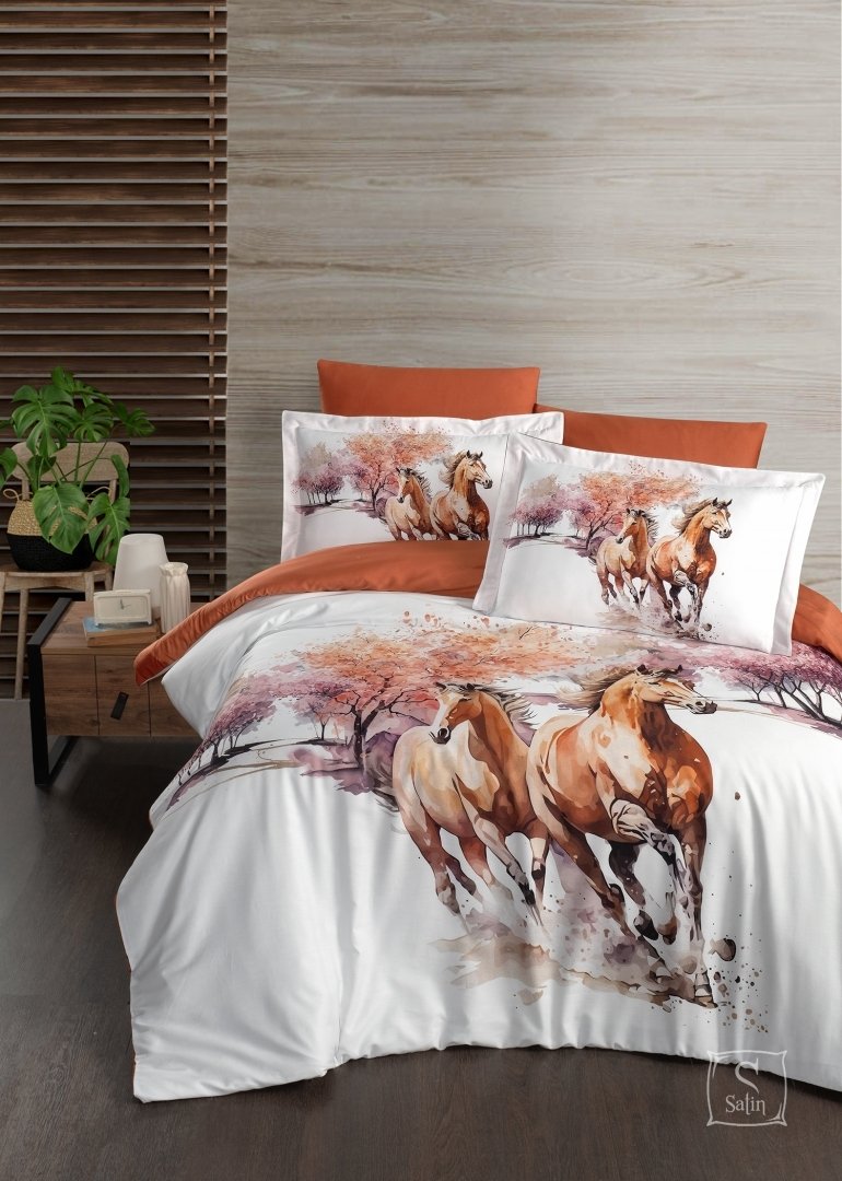 • Комплект Vip Satin 3D Silvan, воплощение элегантности и стиля. Современная технология 3D фотопечати создает реалистичный и живописный принт лошади, который покорит сердца ценителей качественного белья.