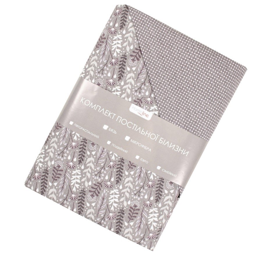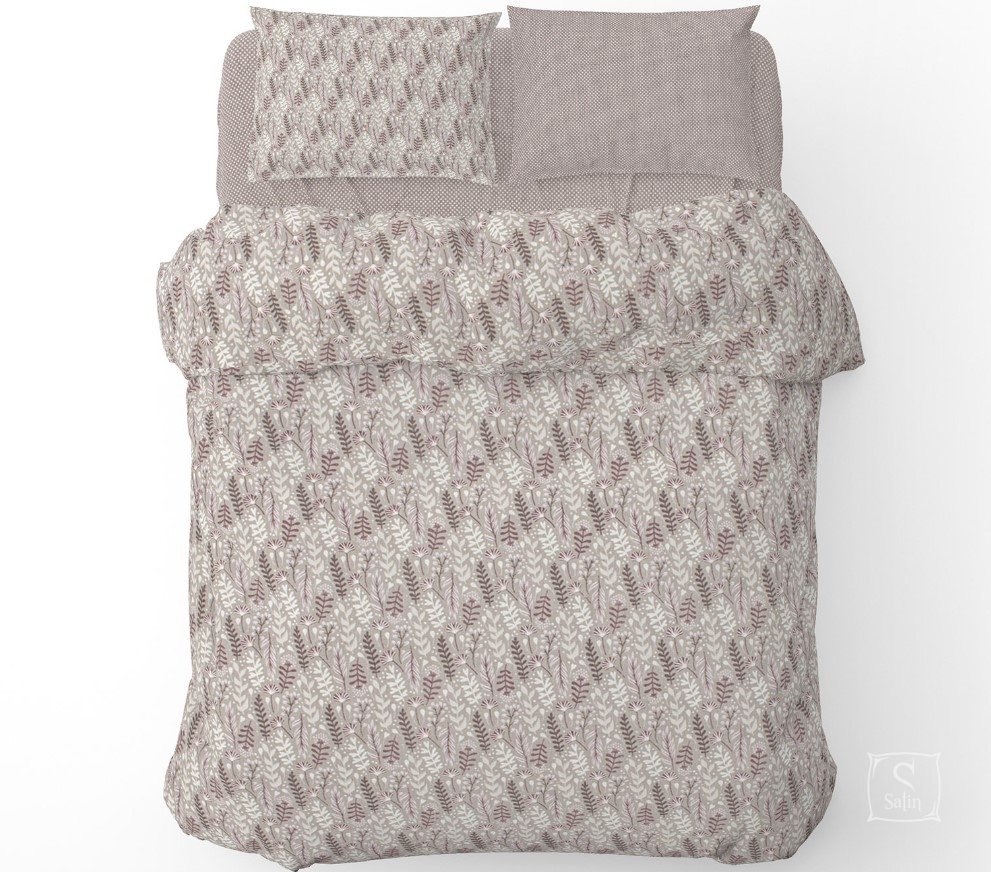 Комплект постельного белья Home Line из бязи Цвітіння трав/Пшоно ліловий украшен растительным узором.
