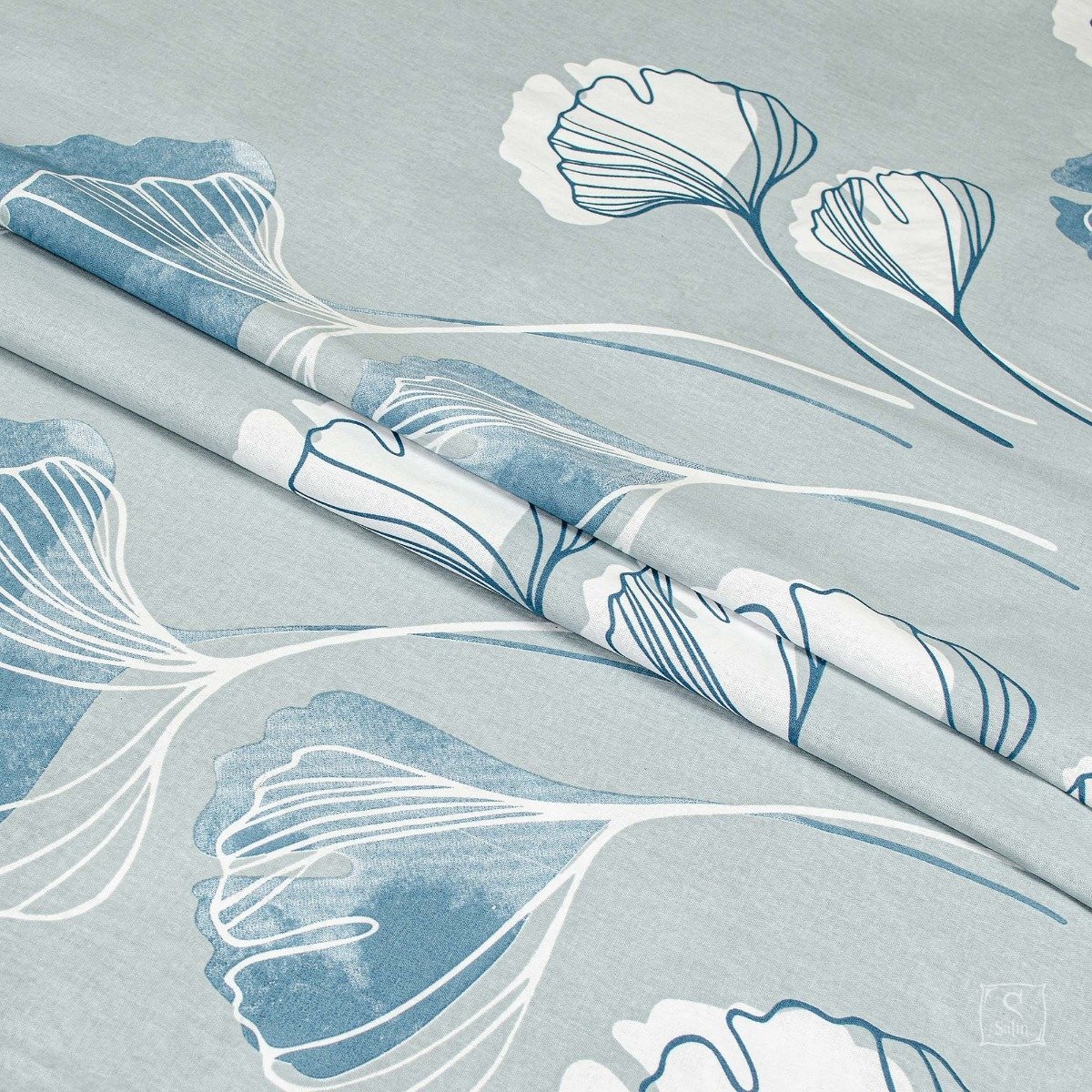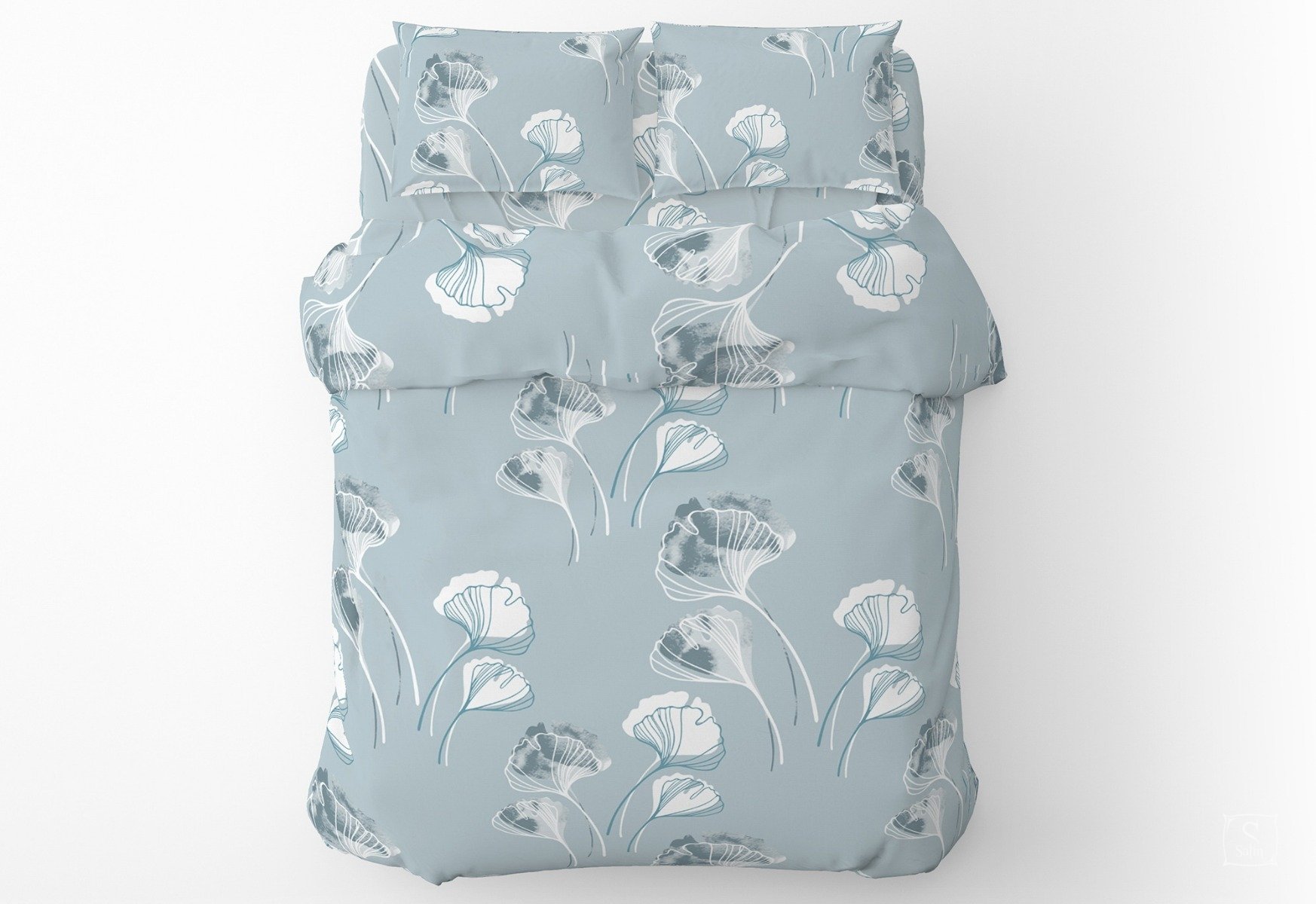 Комплект постельного белья Home Line из бязи Гинго Билоба серо-голубого цвета с рисунком листья.