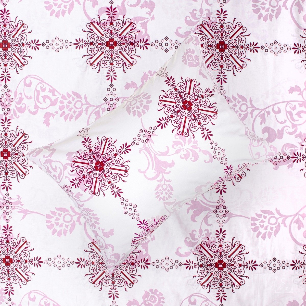 Комплект постельного белья Home Line из бязи Кармен выполнен в бело-красных тонах с рисунком цветы.