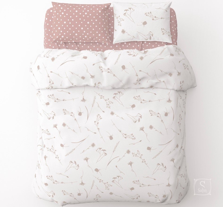 Комплект постельного белья Home Line из бязи Волошки/Горох рожево-ліловий на білому украшен узором цветы и горох.