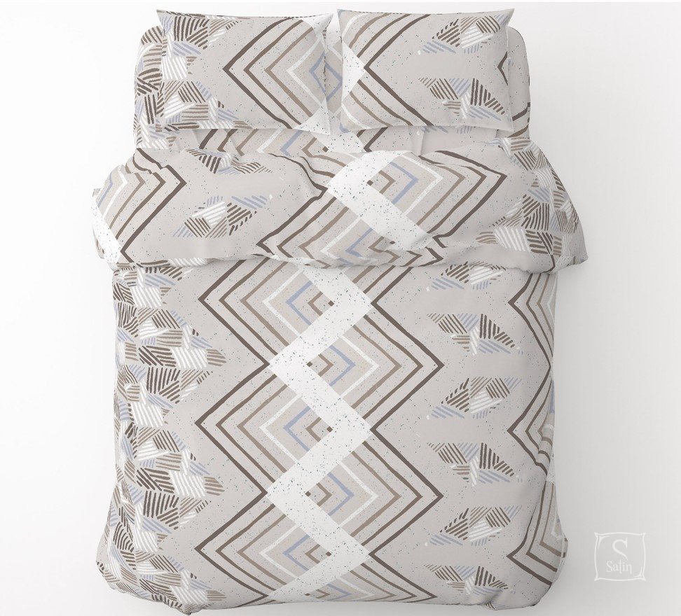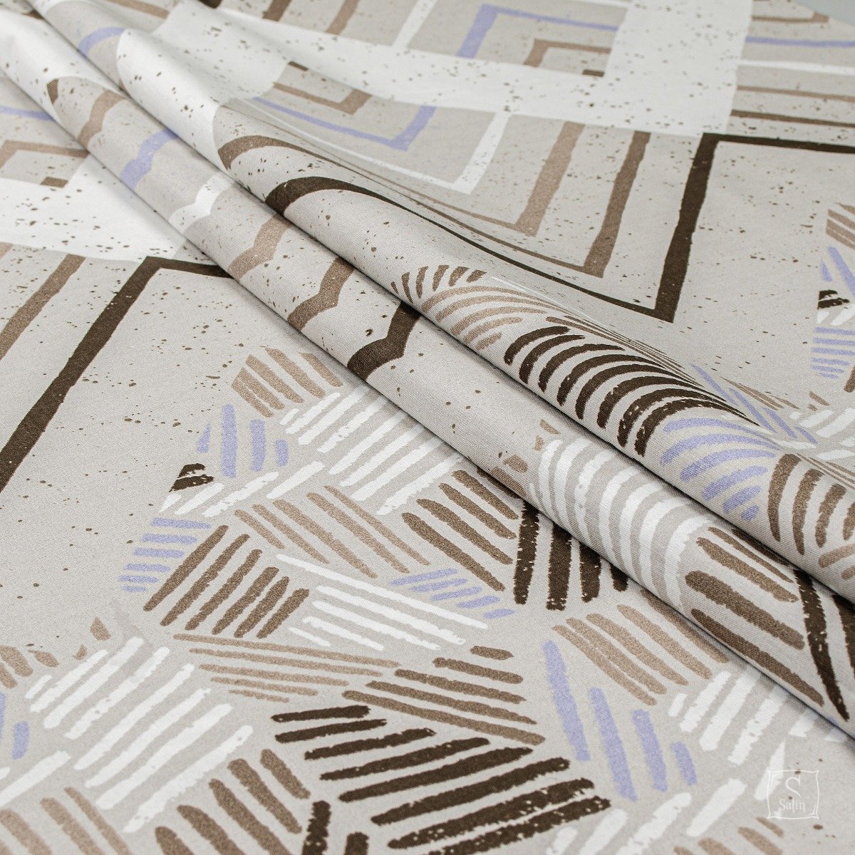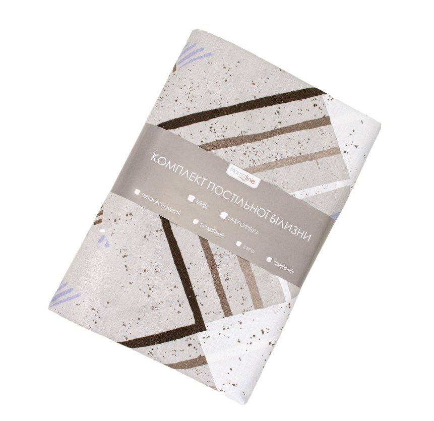 Комплект постельного белья Home Line из бязи Захопленність бузково-бежевий украшен геометрическим узором.