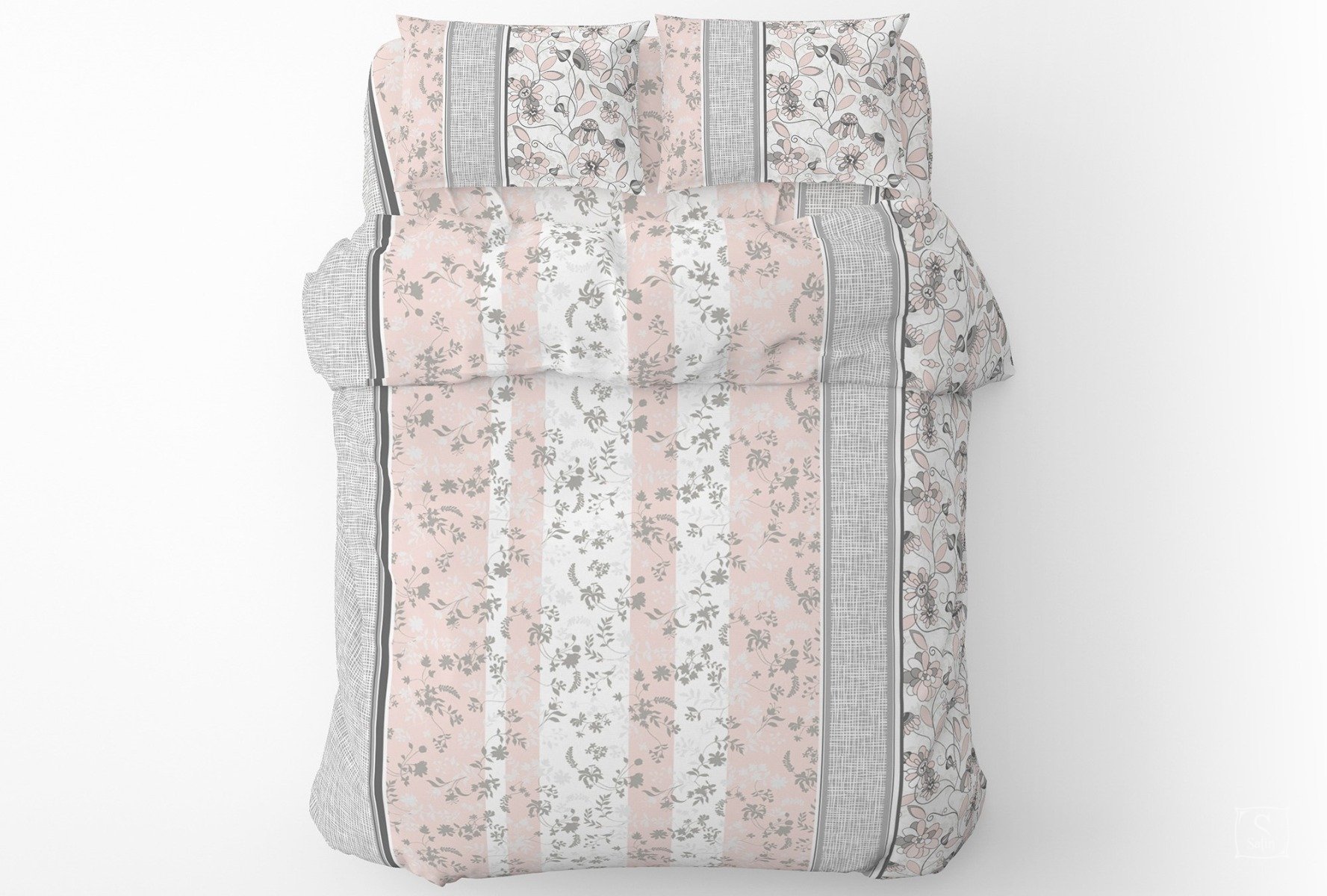 Комплект постельного белья Home Line из бязи Уют серо-розового цвета с рисунком цветы.