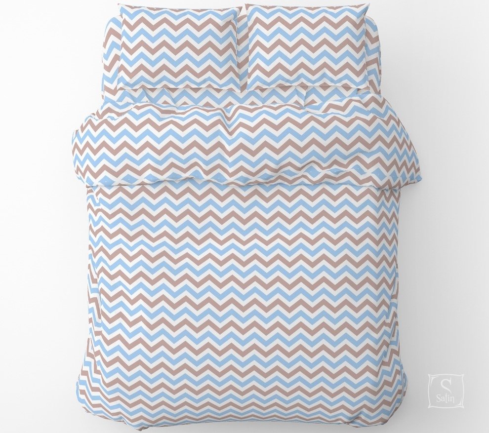 Комплект постельного белья Home Line из бязи Зіг заг блакитно-коричневий украшен рисунком зигзаг.