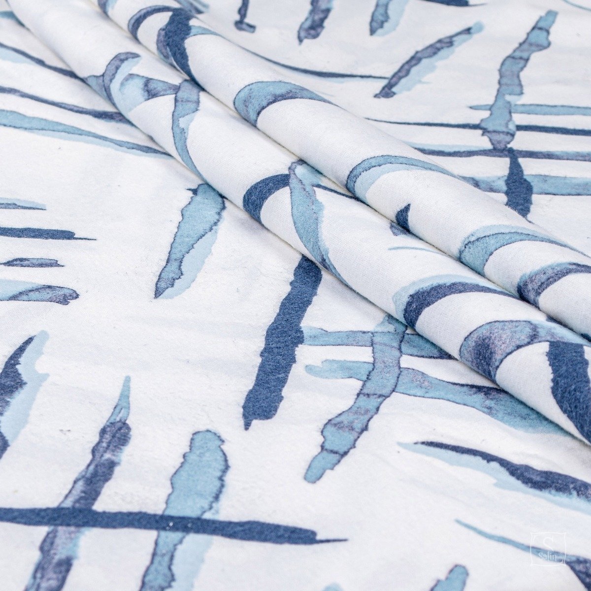 • Комплект Фланель сине-белого цвета выполнен с абстрактным принтом.