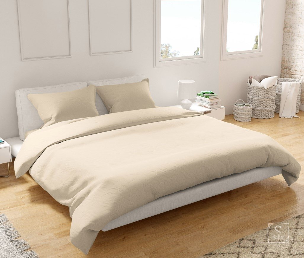 Комплект Home Line Сатин выполнен в однотонном бежевом цвете..