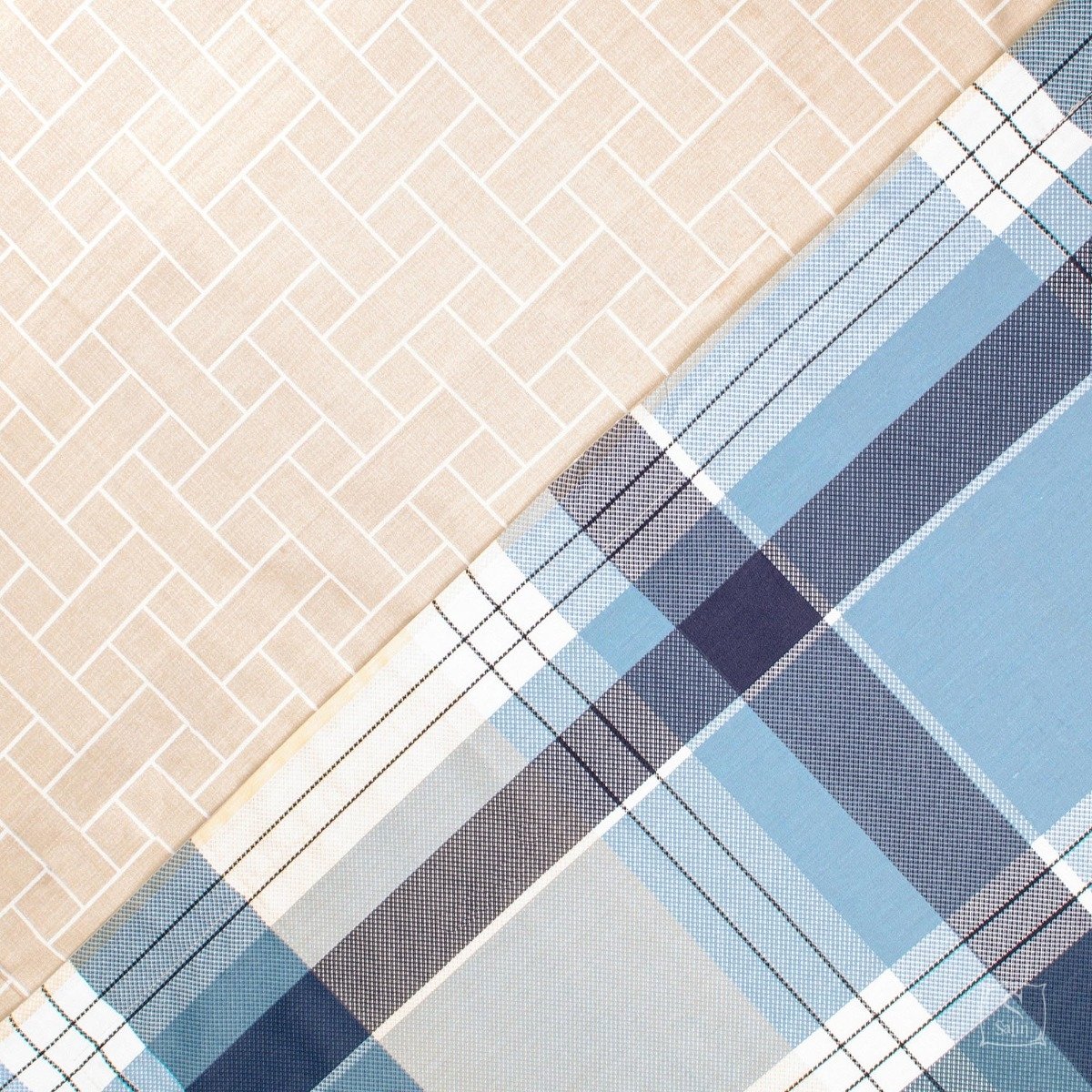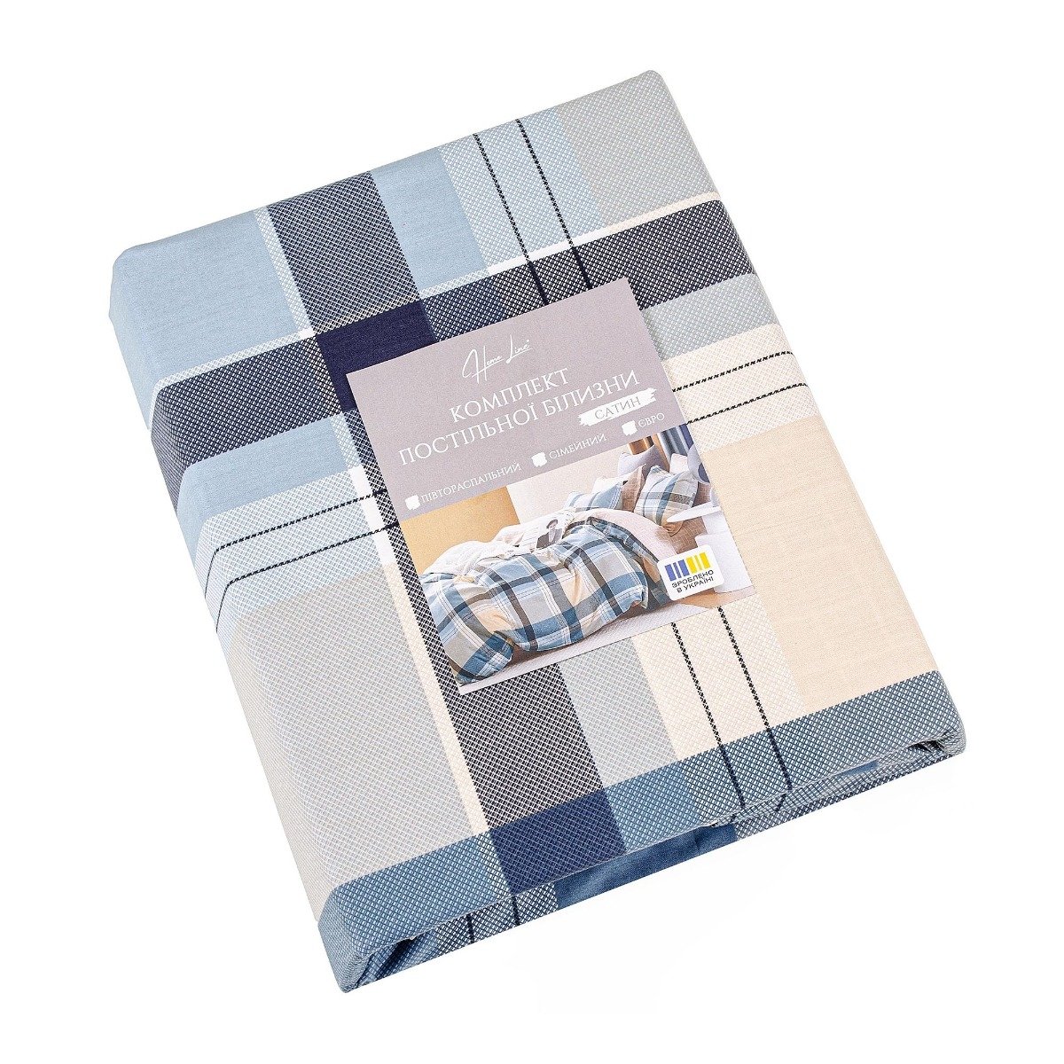 Комплект Home Line Сатин "Трой" выполнен в серо-голубых тонах в клетку.