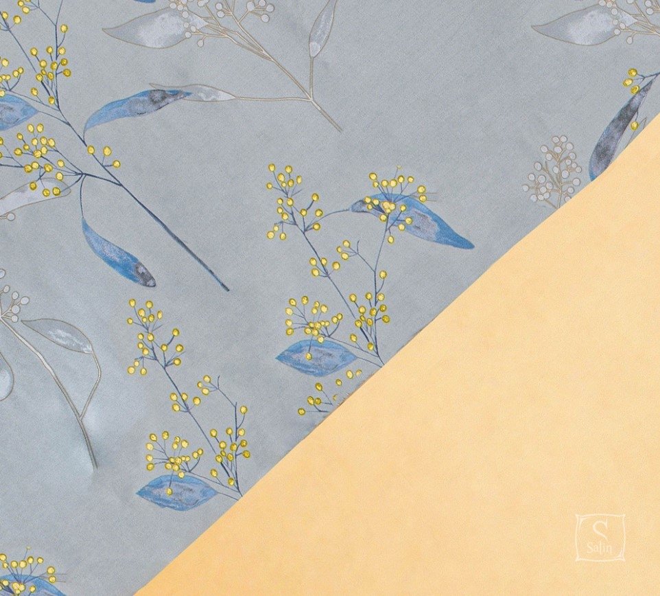 Комплект Лу Сен выполнен в серо-бежевых тонах с цветочным узором.