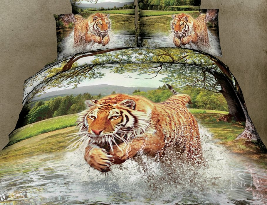 • Комплект AB 380 выполнен в зеленом цвете с тигром бегущим по воде. Использованы ткани-компаньоны.