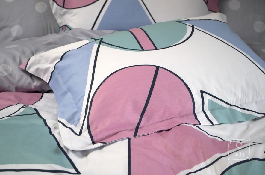 Постельный комплект Lotus Home Сатин Agina разноцветный, с геометрическим дизайном. Пододеяльник с двухсторонним рисунком, застегивается на пуговицы. Наволочки также имеют двухсторонний рисунок и отделку ушки по периметру.