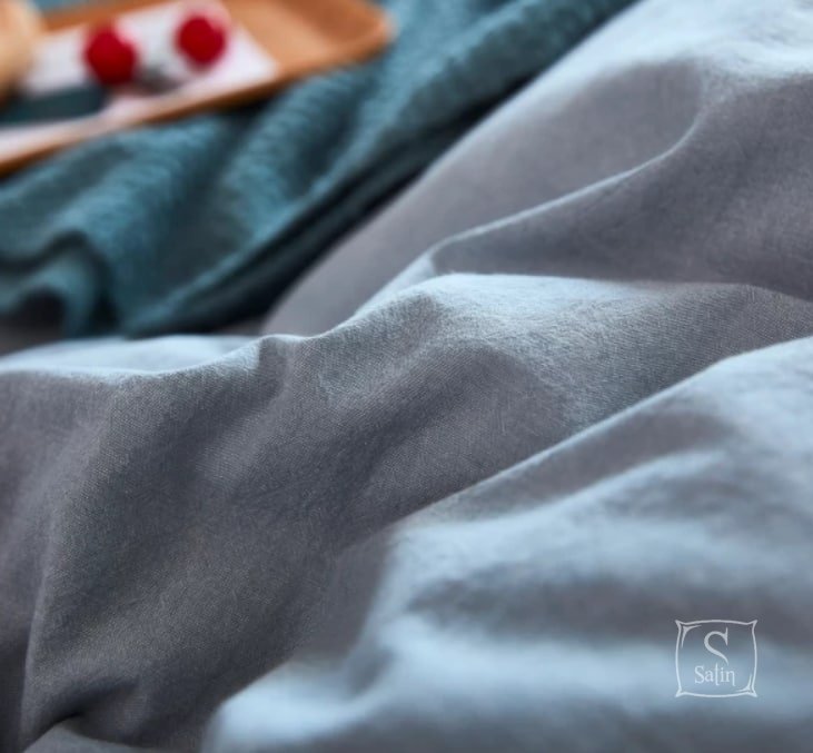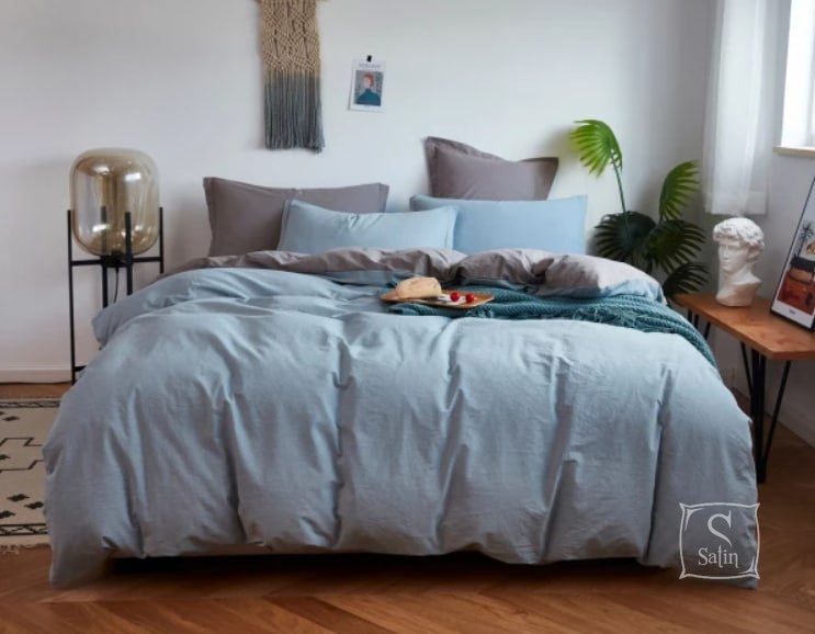 Постельное белье Love you. Вареный хлопок серо-голубое