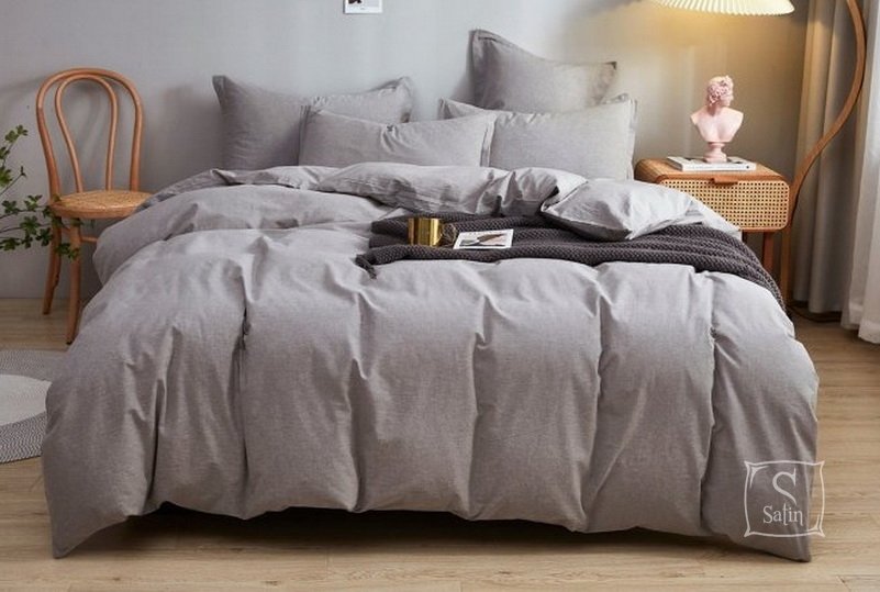 Постельное белье Love you. Вареный хлопок серое