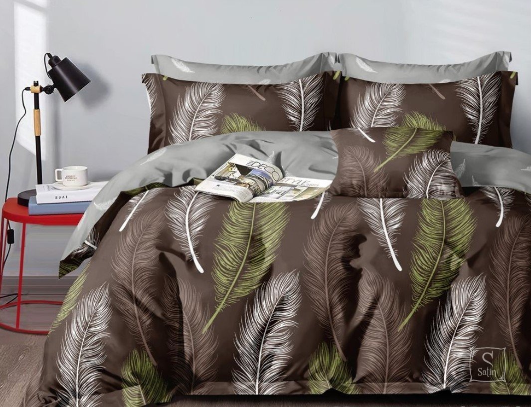 • Комплект постельного белья Sofia СР-338 Перья выполнен в серо-коричневых тонах с принтом перья.