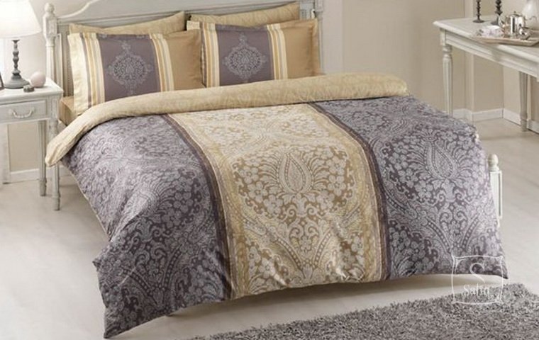 • Комплект  Damas Grey  выполнен с вензелями в бежево-лиловых тонах;