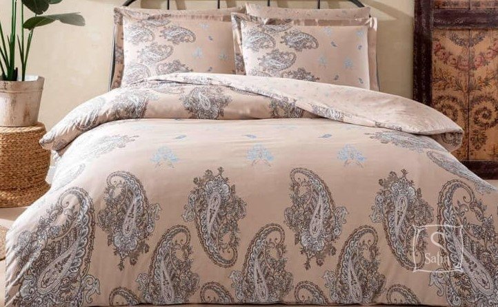 • Комплект Herna бежевого цвета выполнен с турецкими огурцами;