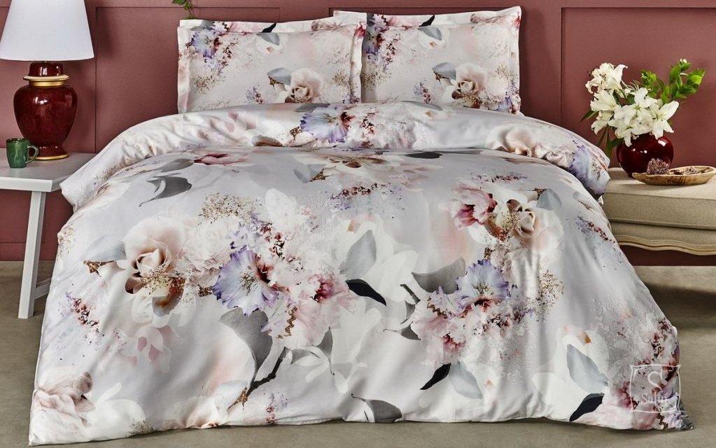 Комплект постельного белья Evander Grey выполнен в серых тонах с цветочным принтом из сатина (100% хлопок).