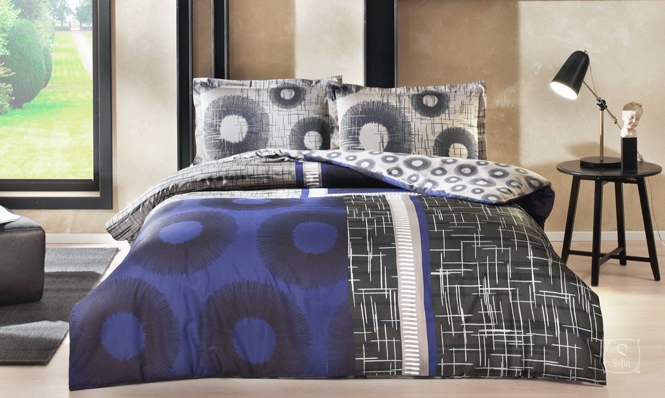 Комплект постельного белья Lionel Blue выполнен в сине-черных тонах с принтом геометрия из сатина (100% хлопок).