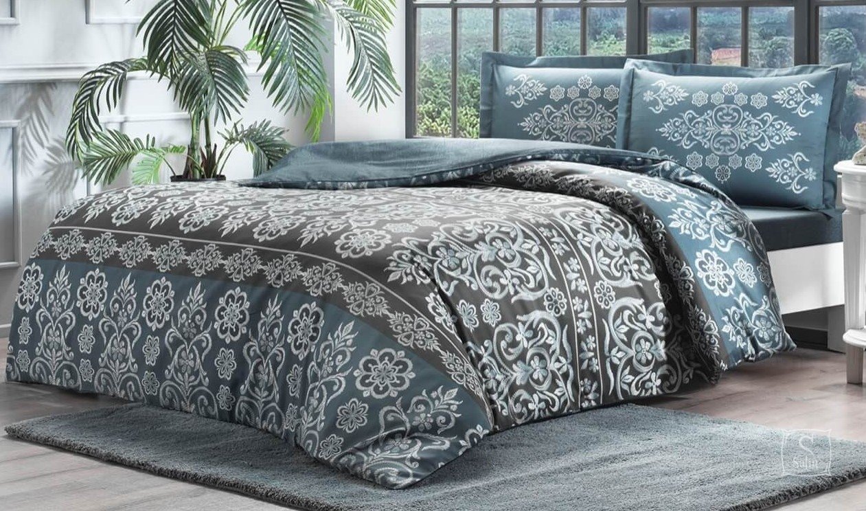 Комплект постельного белья Savion выполнен с принтом вензель из сатина (100% хлопок).