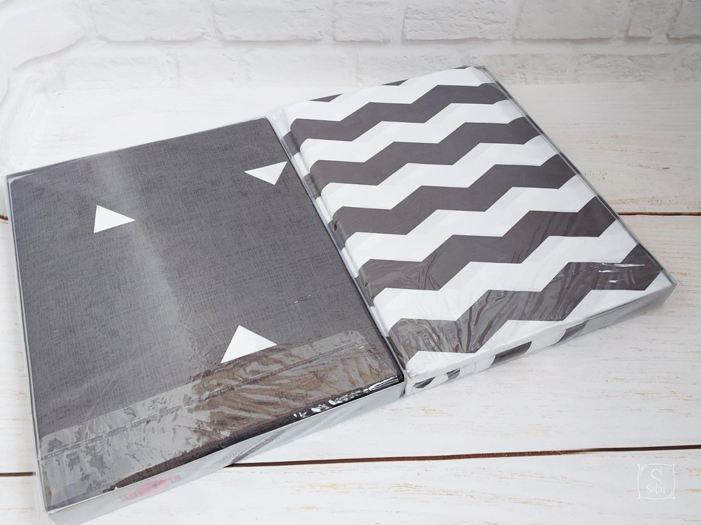 Комплект 334 Night выполнен в черно-белых тонах, преимущественно в черных с оригинальным узором волна и треугольник.