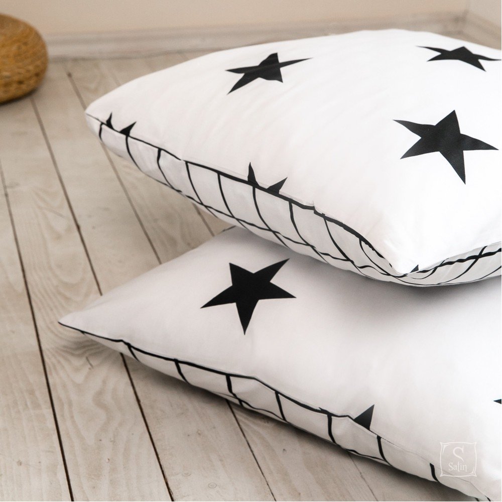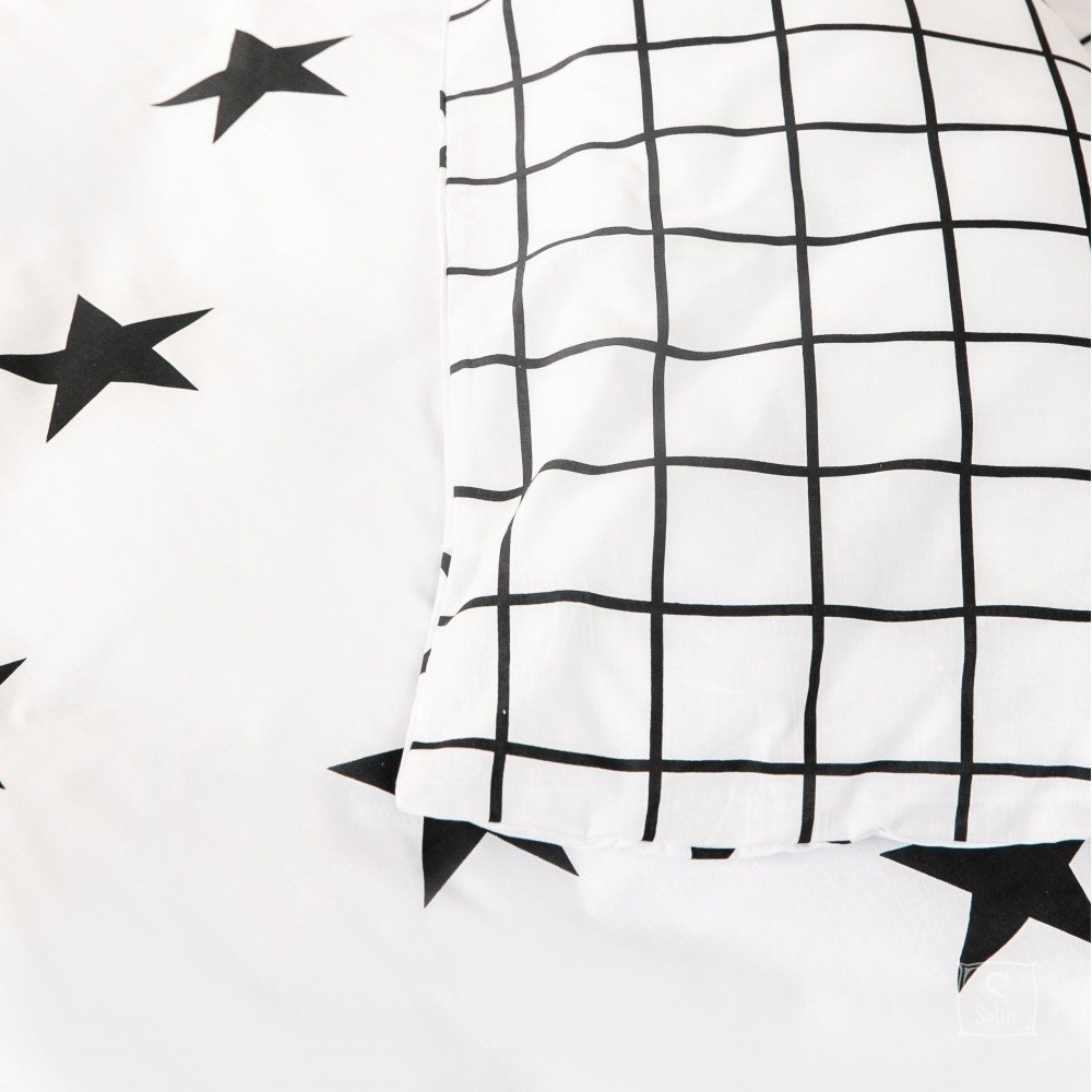 Комплект 336 Morning Star выполнен в чорно-белых тонах, преимущественно в белых с оригинальным узором клетка и звезды.