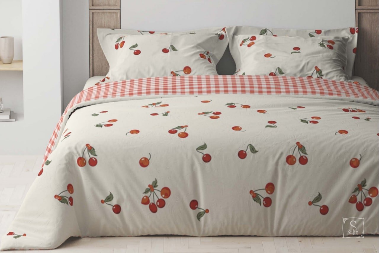 Комплект ТЕП 379 Cherry Combo с рисунком сочных ярких вишен на белом.