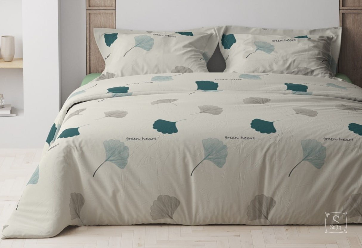 Комплект ТЕП Emerald dreams с рисунком листьев на кремово-бежевом фоне.