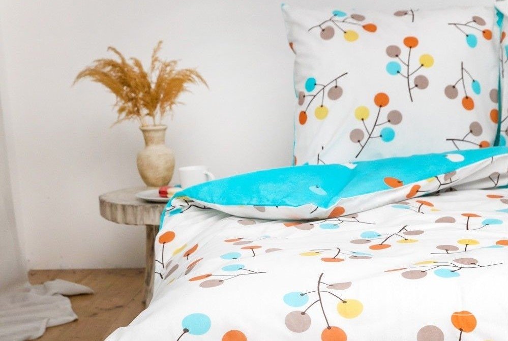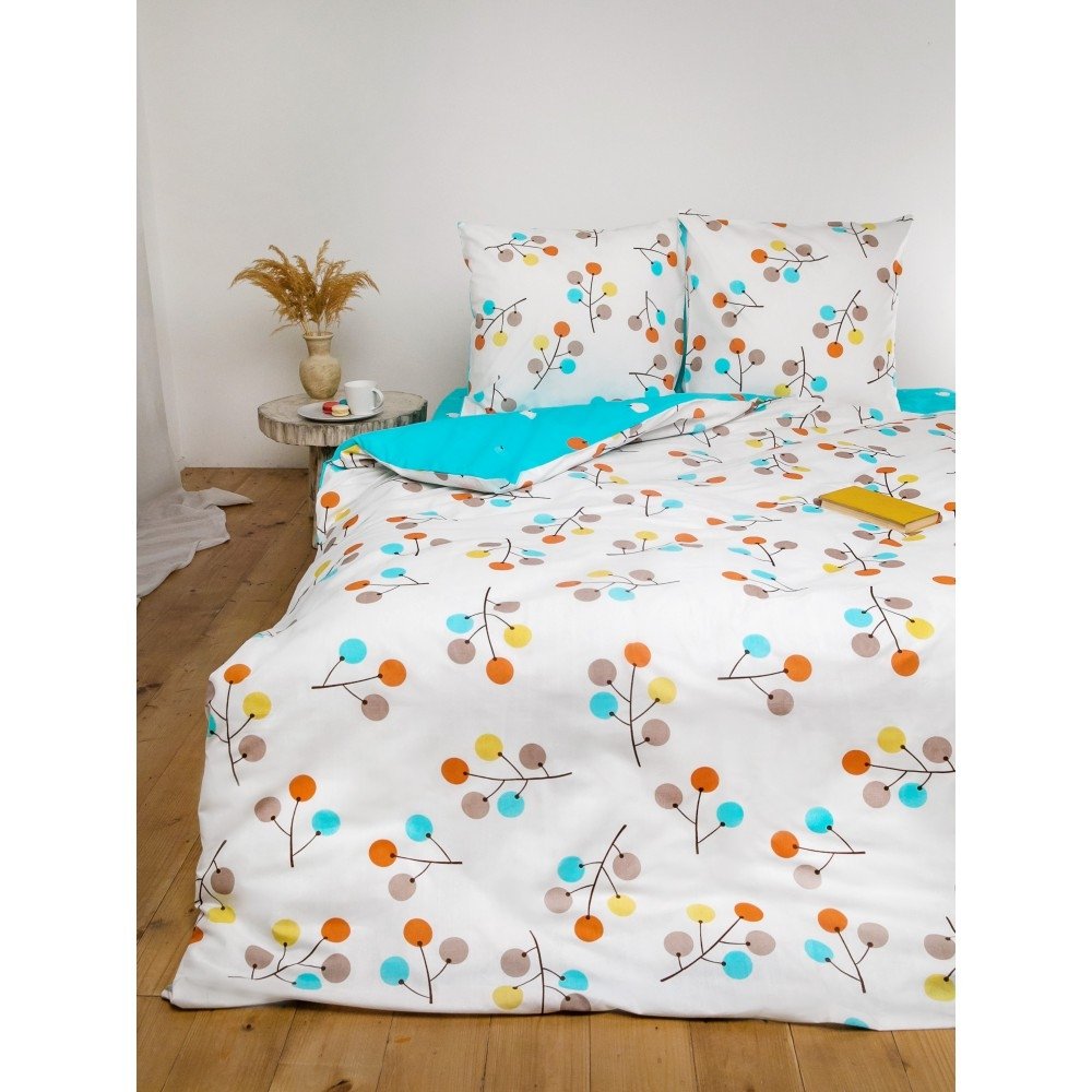 Постельный комплект ТМ ТЕП Everyday collection Smiley Branch с рисунком в стиле флет-дизайн и контрастной бирюзовой простыней, изготовлен из высококачественной бязевой ткани.