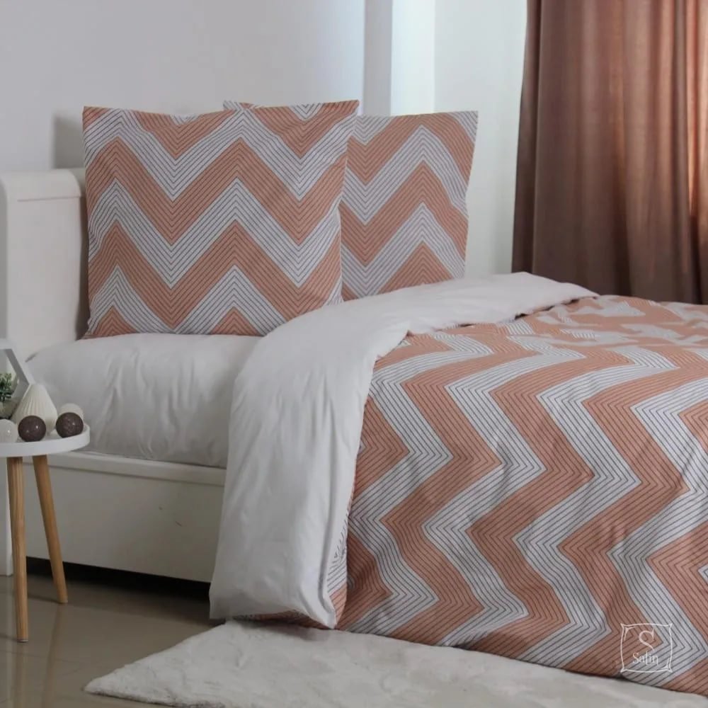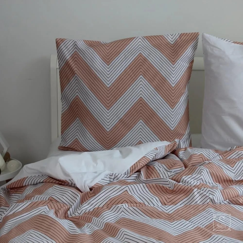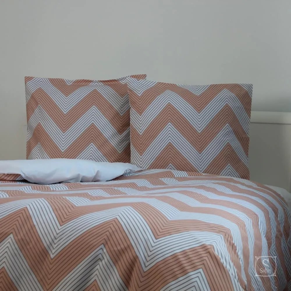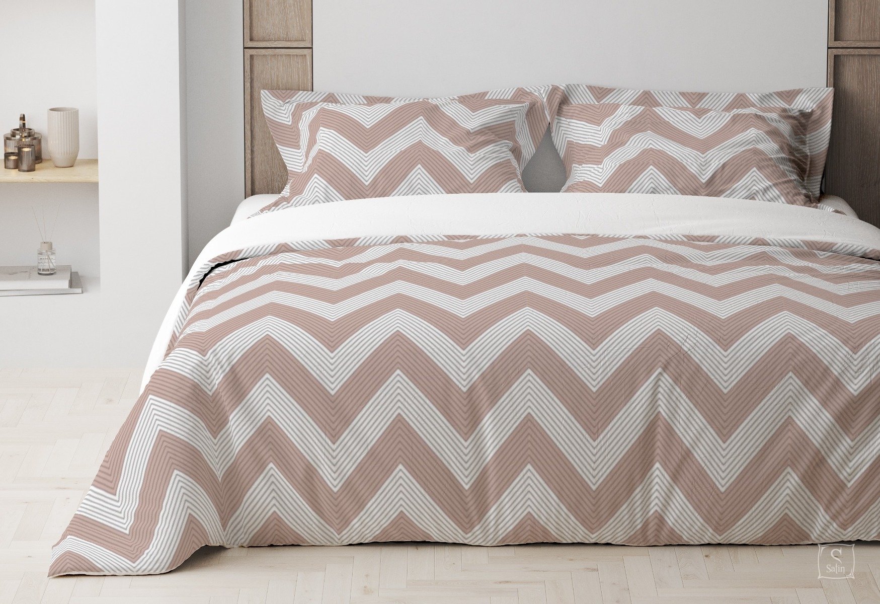 Комплект Happy Sleep Modern Peaks выполнен в бежевых тонах, узор зиг-заг.