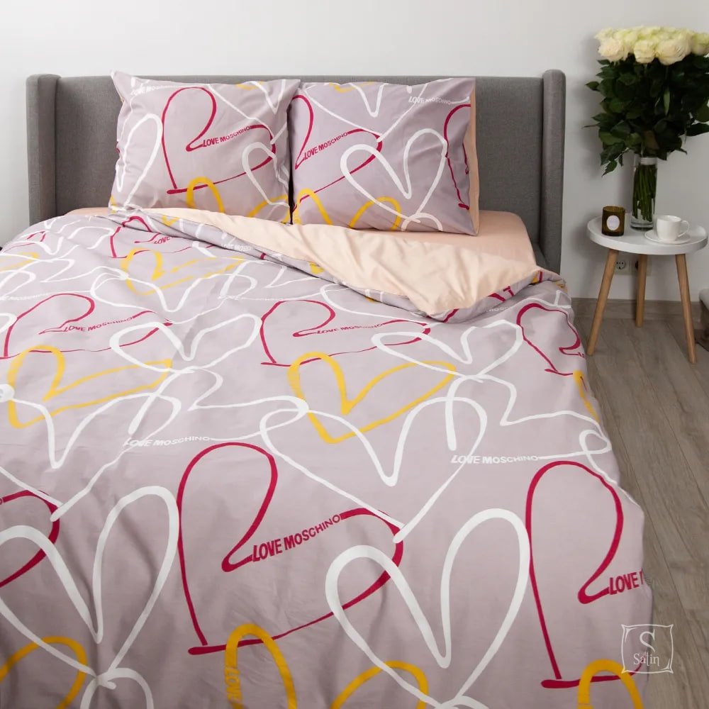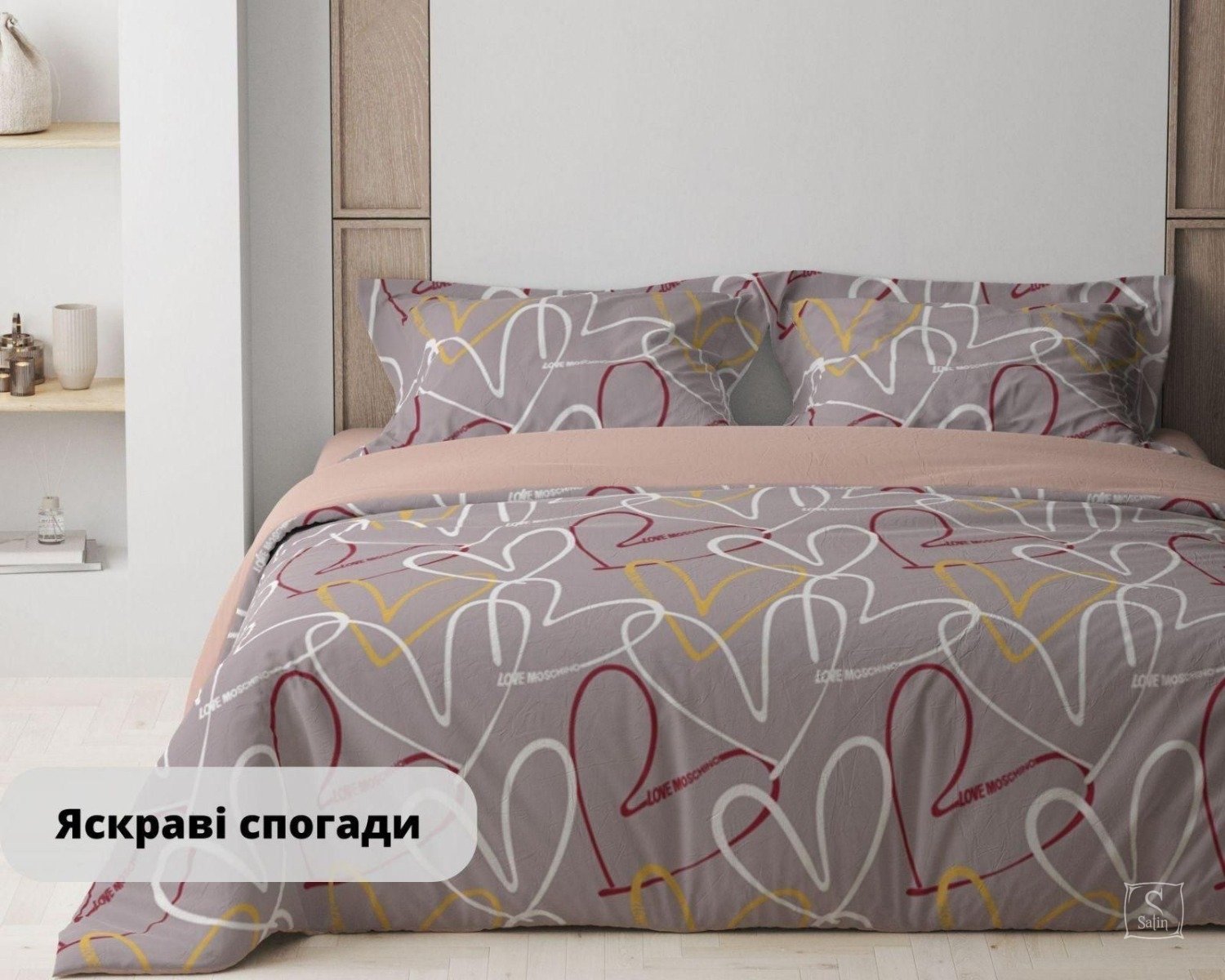Постельное белье ТЕП. Яскраві спогади серого цвета с рисунком сердца, создает атмосферу тепла и гармонии в вашей спальне. Метод печати пигментами гарантирует стойкость рисунка и яркость цветов.
