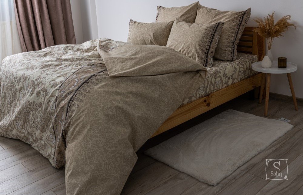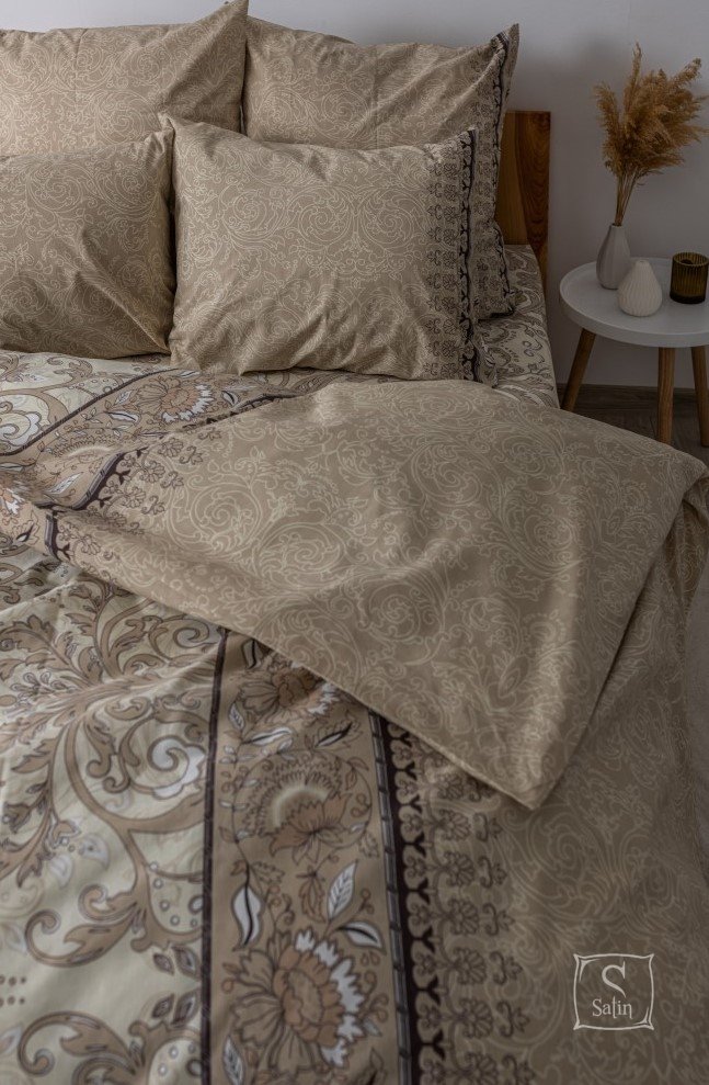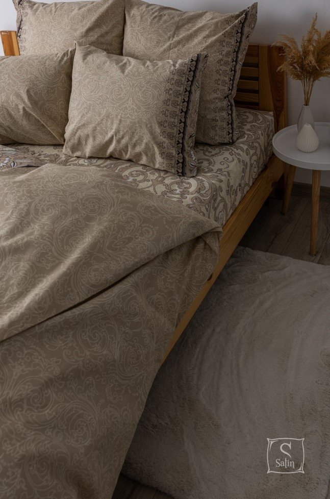 Комплект ТЕП Soft dreams Blenheim с рисунком вензель на коричневом фоне, изготовлен из высококачественного ранфорса.