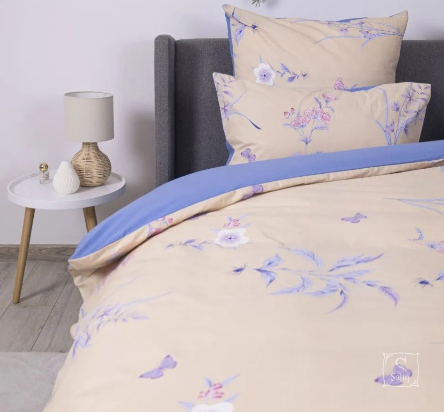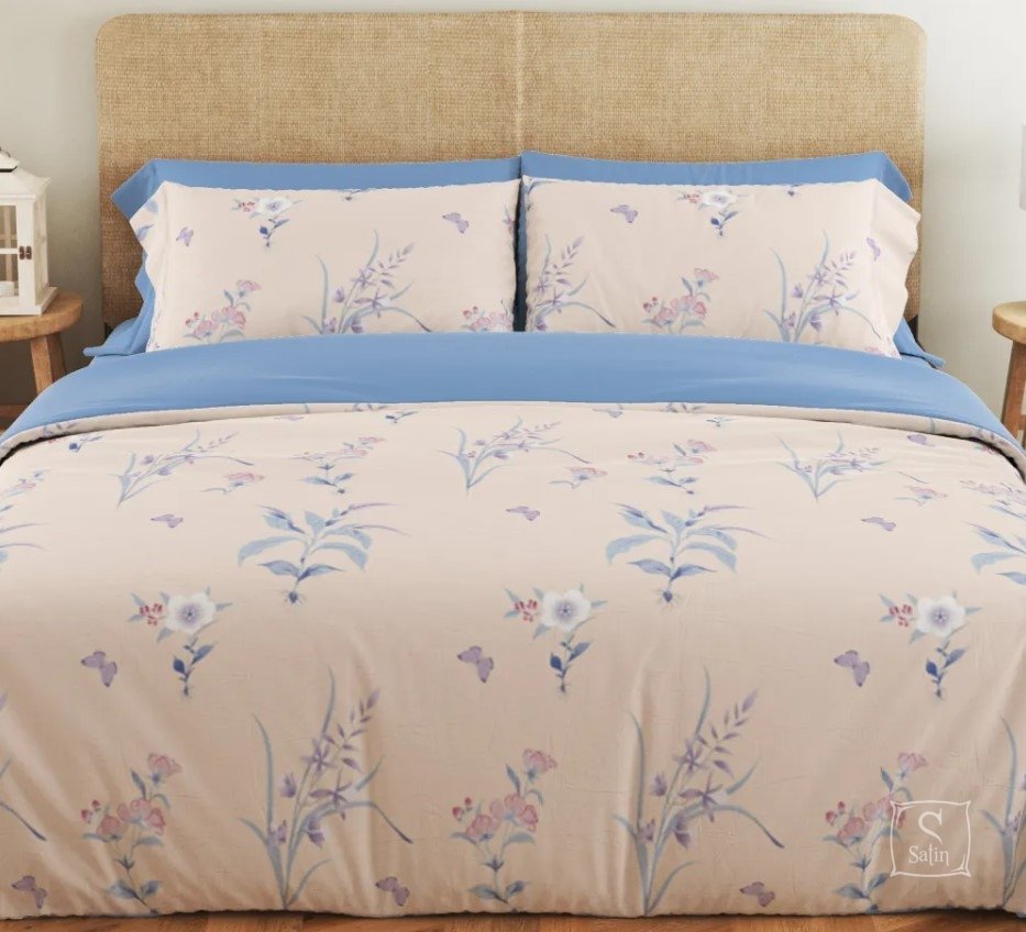 Комплект Soft dreams Квітуча Магія выполнен в персиково-голубых тонах с цветочным узором. Способ нанесения рисунка: пигментная печать.