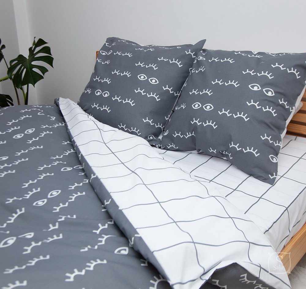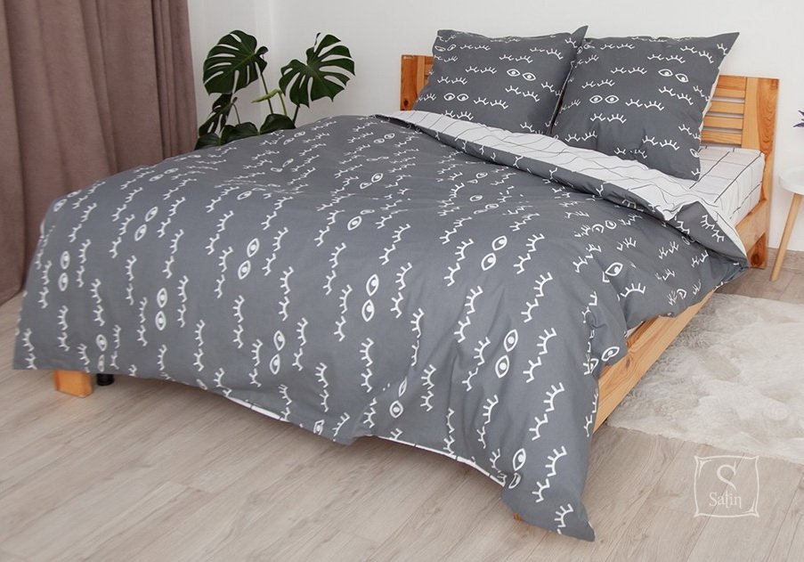 Комплект Soft dreams Look выполнен в бело-серых тонах с оригинальным узором глазки. Способ нанесения рисунка: пигментная печать.